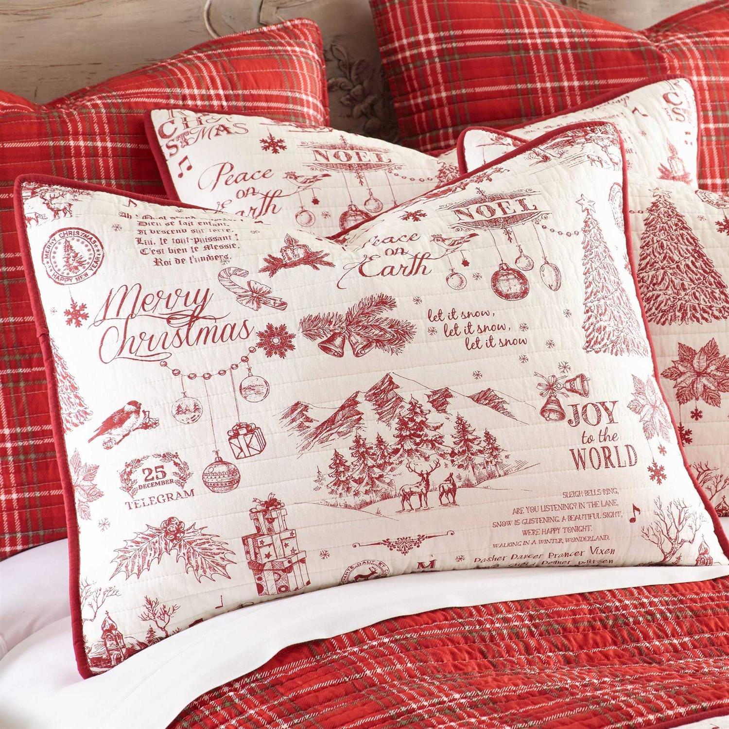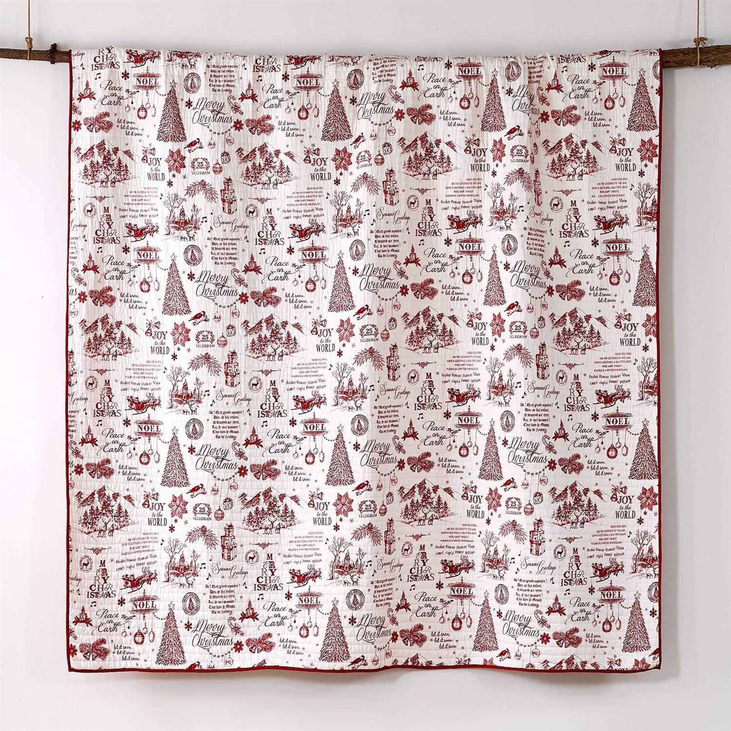 The Yuletide Reversible Twin/Twin XL Quilt Set by Levtex Home is inspired by vintage Christmas postcards. Offered in red and white, this design will immediately transform your bedroom. Made with the softest pre-washed cotton, this reversible quilt features a mix of holiday icons, sayings and phrases in red script on a cream ground, reversing to rich red, green and cream plaid on the other. The Twin/Twin XL Quilt Set is machine washable and includes the quilt 68 in. x 86 in. and 1-pillow sham 26 in. x 20 in. Bring the holidays home. Color: Red;Cream.