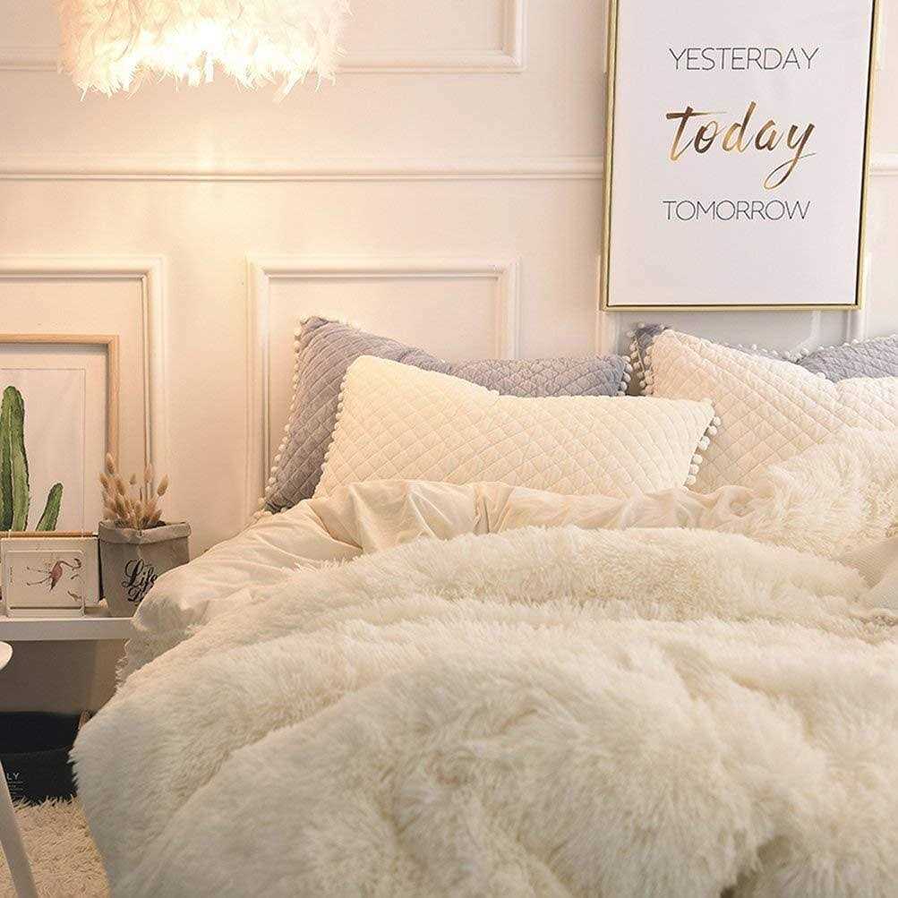 Liferevo Luxury Plush Shaggy Duvet Cover Set Solid