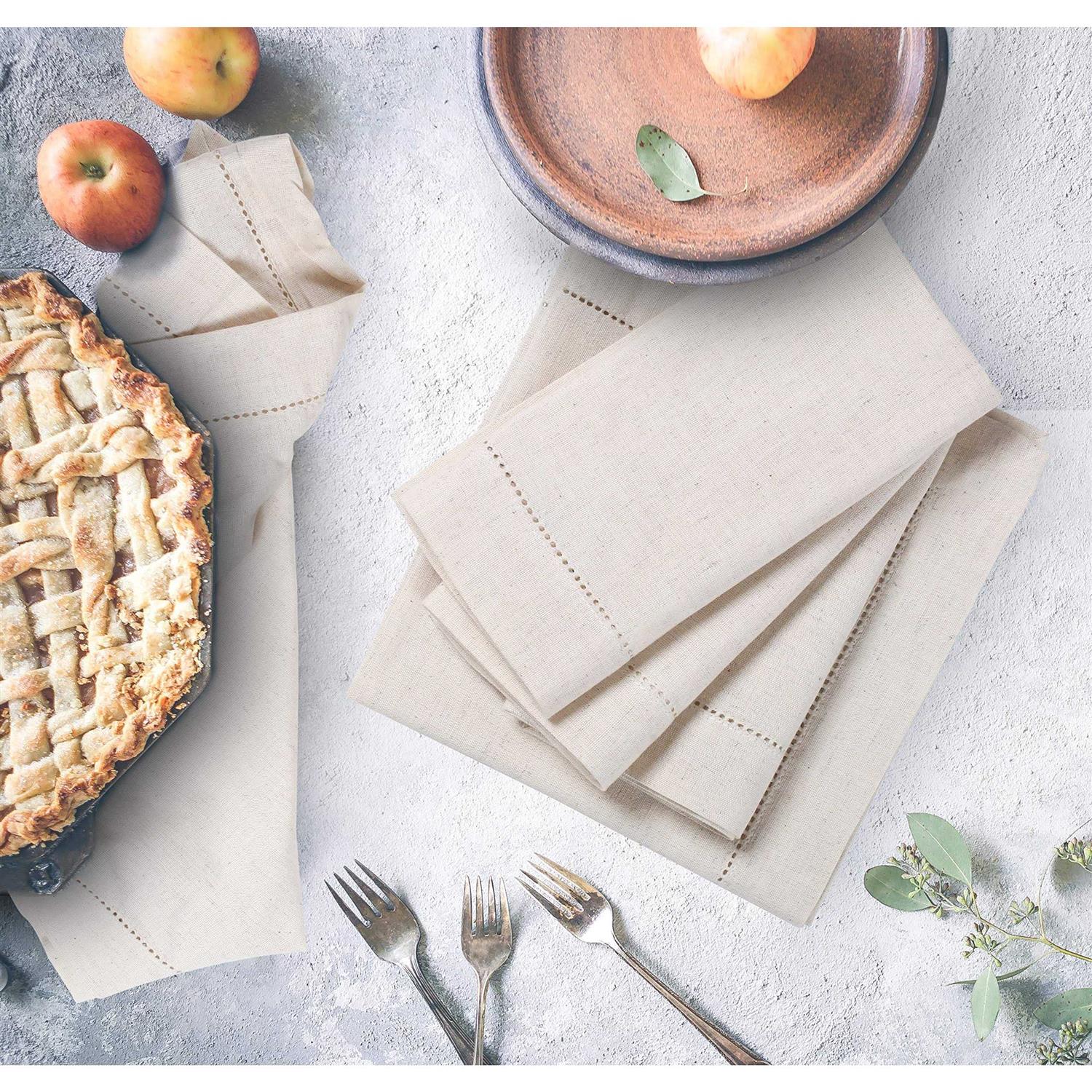 light & pro Linen Napkins,Flax Linen Napkins Hemstitched Linen Napkins,Cloth Napkins,Dinner Napkins Cloth,Cloth Napkins Set of 12,Linen Nap