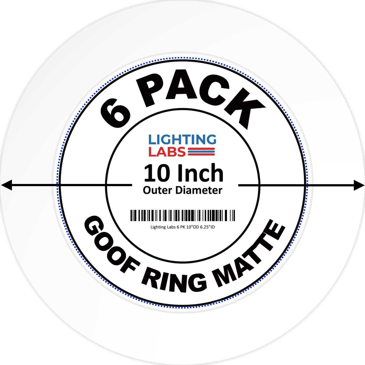 Matte White finish. Covers unsightly, torn drywall caused by the removal of existing trim Outer Diameter: 10 inches. Inner Diameter: 6.2 inches. Thickness: 0.125 inches Designed for 10 Inch Recessed Cans for Ceiling Light Fixtures Trim rings cover gaps from mis-cut and over-sized holes 10″ trim ring with white matte gloss finish 6pack