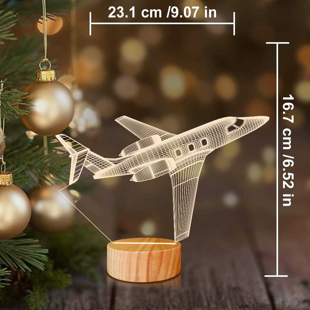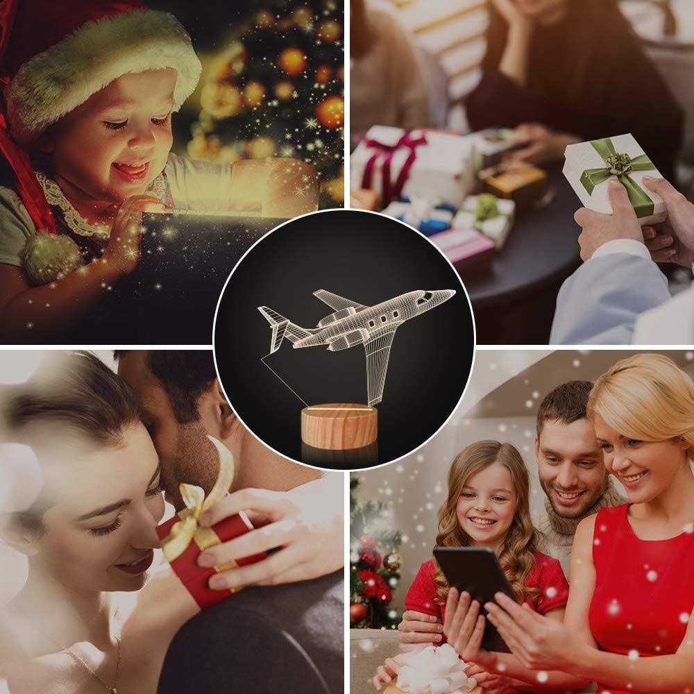 Lightzz Airplane Night Light 3D Illusion Lamp,Soft Warm Colors Wood Table Lamp for Boys Pilot Gifts with USB Power