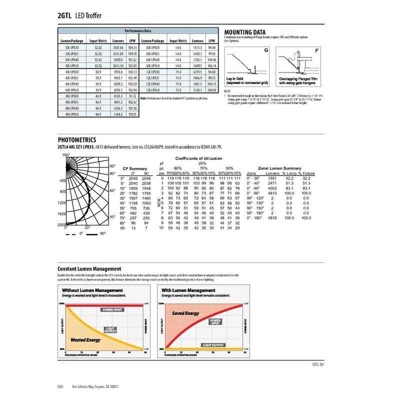 LED Troffer from provides a digital platform to deliver general ambient lighting in applications such as schools, offices and hospitals. Long-life LEDs, coupled with energy efficient drivers, provide extended service life. Low maintenance and easy to install, this troffer works well in applications where LED is desired and budget-consciousness is needed. Housing formed from 22 gauge cold-rolled steel. Smooth hemmed sides and smooth inward formed end flanges for safe handling. Long-life LEDs, coupled with high-efficiency drivers, provide superior quantity and quality of illumination for extended service life. 80% LED lumen maintenance at 60,000 hours. Output 5,000 Lumens with 3,500K bright white color temperature. LED drivers deliver dimming from 0-10V control signal. 10% dimming level.