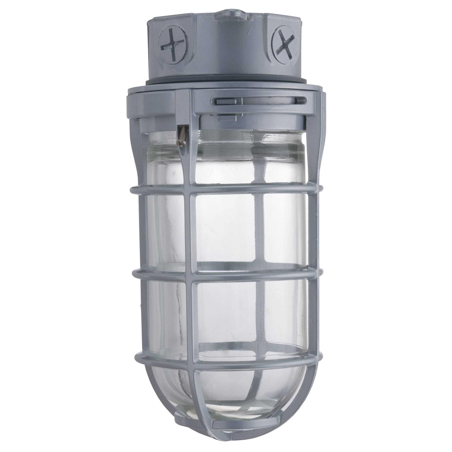 It has voltage rating of 120-Volts and power rating of 150-Watts. Fixture in gray finish, has rugged die-cast aluminum housing for longer endurance and heavy-duty prismatic glass globe for even distribution. It measures 7-1/4-Inch x 10-Inch. Fixture supports ceiling mounting for making installation easy. It comes with junction box. Fixture is suitable for entrances, hallways, closets, tunnels and other utility applications. Fixture is UL listed and CSA certified.