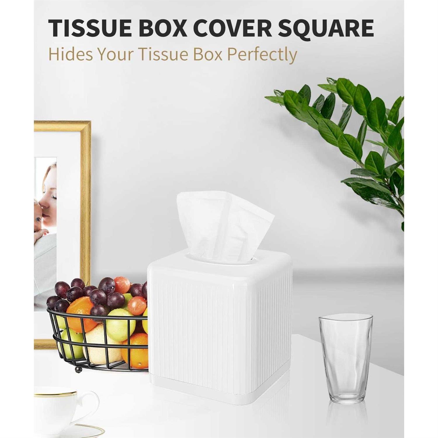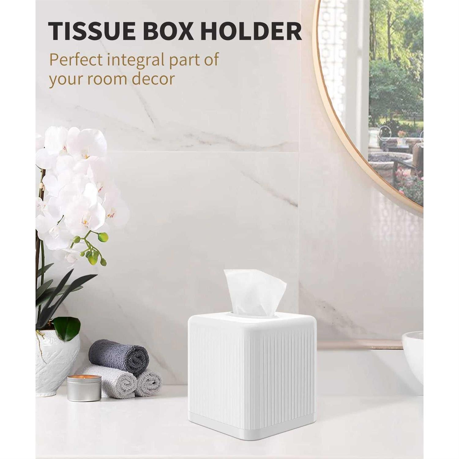 Livelab Tissue Box Cover with Base Square Plastic Tissue Box Holder Decorative Tissue Cover Modern Cube Facial Tissue Dispenser for Bathroom Vanity