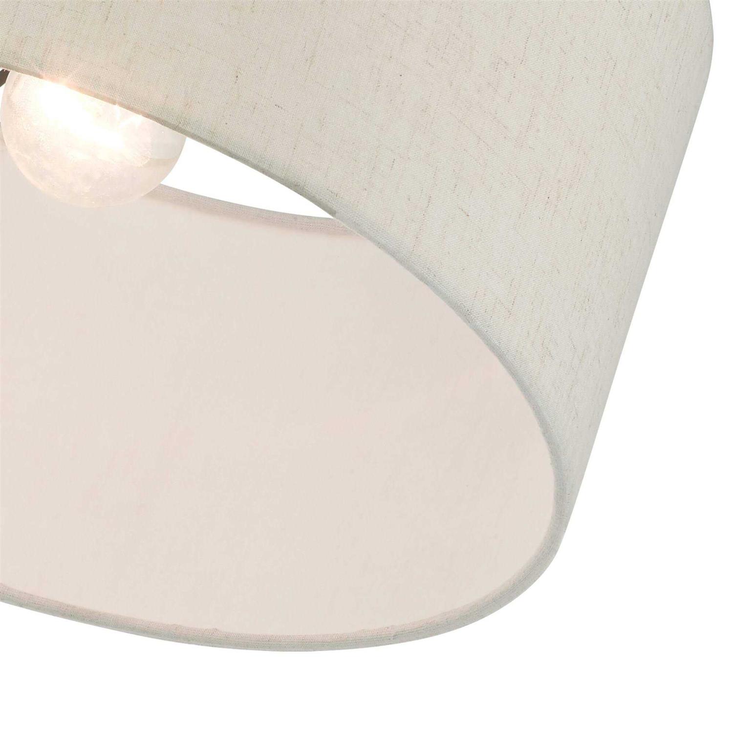 The Meadow collection is both modern and versatile. The hand-crafted fabric oatmeal colored hardback shade is set off by the silky white fabric on the inside setting a pleasant mood. The medium size single-light drum shade adds character to this handsomely styled semi flush. Perfect fit for the hallway, bathroom, kitchen and a small bedroom. This sleek design is shown in a brushed nickel finish.