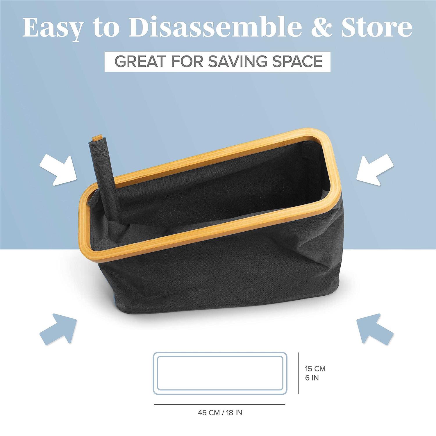 SMART STORAGE – This lightweight basket offers a large capacity that can hold up to 12 rolls of toilet paper. With our bathroom caddy, you can save space while keeping everything you need organized, together and most importantly, within reach. Dimensions: 45 x 15 x 34 cm (L x W x H) MULTIFUNCTIONAL This storage basket can be used to store toilet paper or bathroom accessories that clutter up your space and result in lost or broken items. Multiple storage baskets can be stacked, making storage simple. Bamboo Materials Our toilet paper basket is made with high quality breathable materials that keep homes smelling good. The wooden parts of the bathroom organizer are made of bamboo. This storage basket provides a stylish look for your bathroom or utility closet. Available in 4 different colours STYLISH DESIGN FOR A FINISHED LOOK – When it comes to bathroom storage, you no longer have to choose between functionality and fashion. Our storage baskets are made of high quality materials and stylish design. These baskets are amazing and work wonders to keep everything you need close at hand. EASY ASSEMBLY Our toilet paper basket is simple to use and easy to assemble. Using the instructions inside, you can set up your new bathroom organizer in less than 3 minutes. Designed to stand with durable materials, this toilet paper storage is the answer to all the clutter in your bathroom.