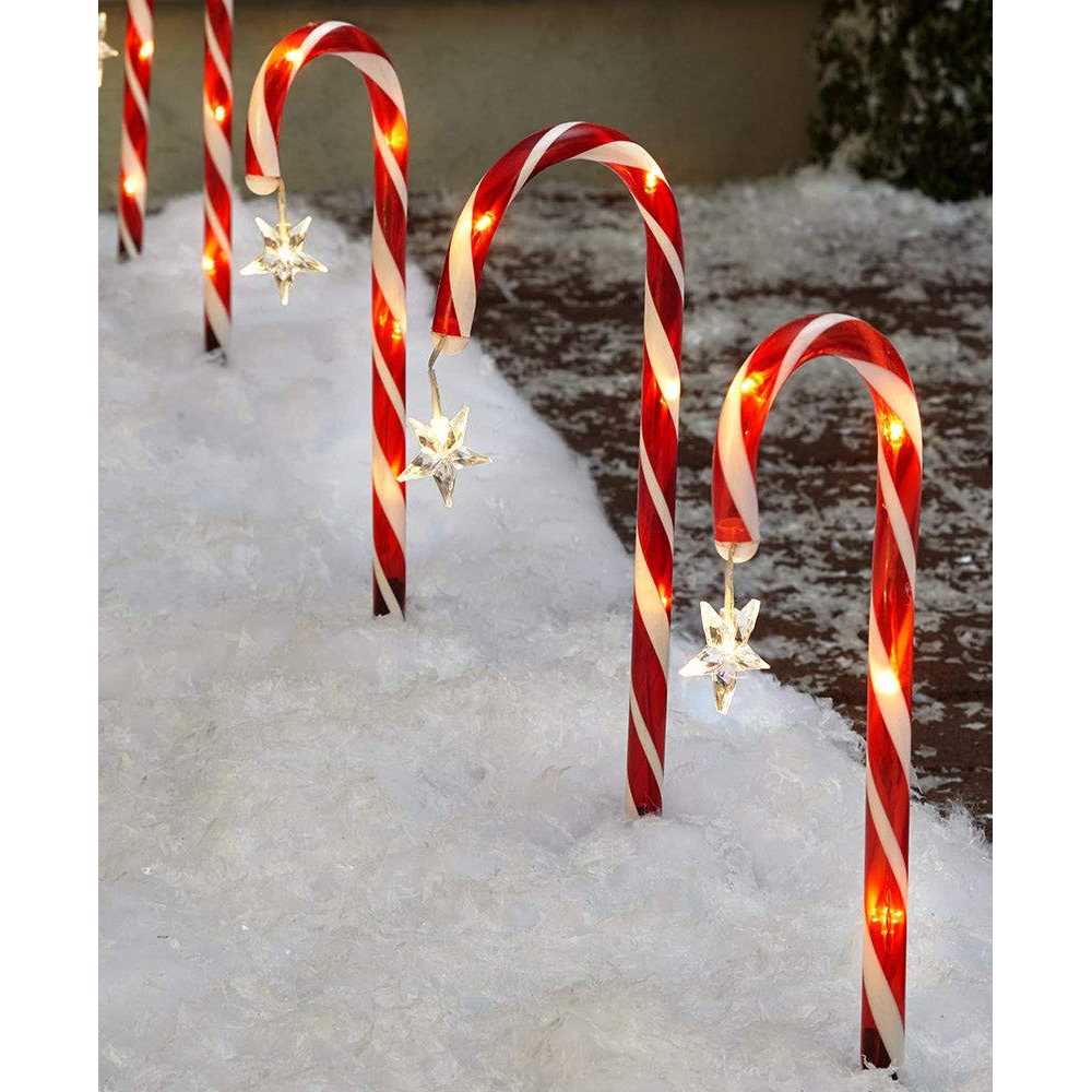 LTD Solar Candy Cane Pathlight Stakes with Star Accent