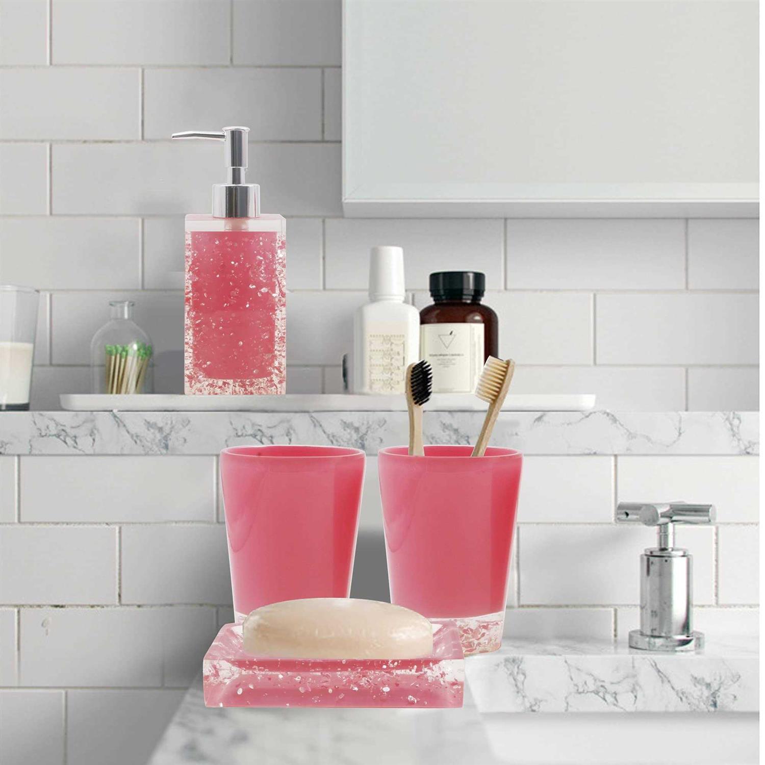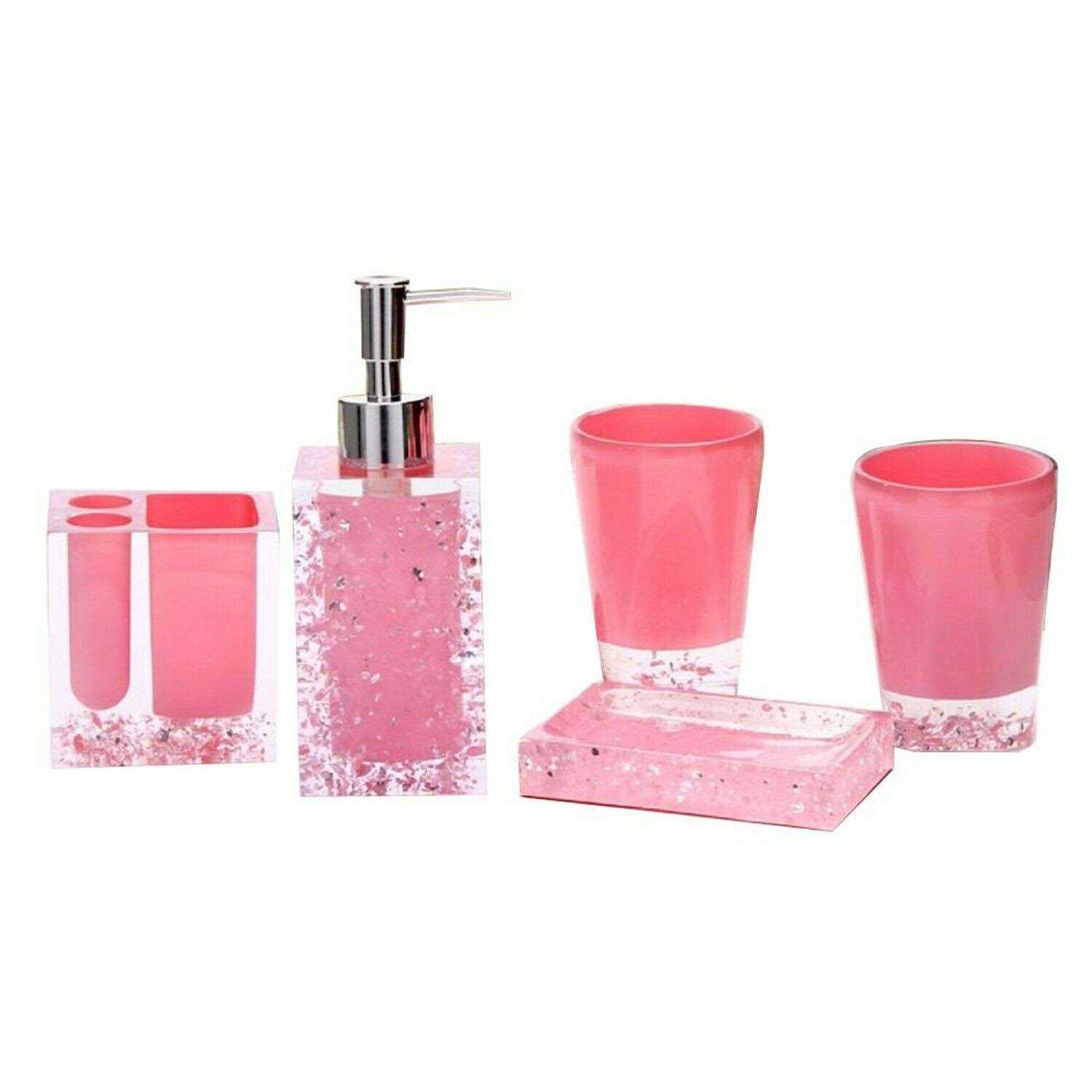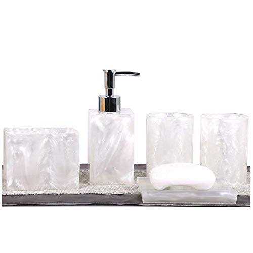 LUANT Resin Soap Dish Soap Dispenser Toothbrush Holder & Tumbler Bathroom Accessory 5 Piece Set