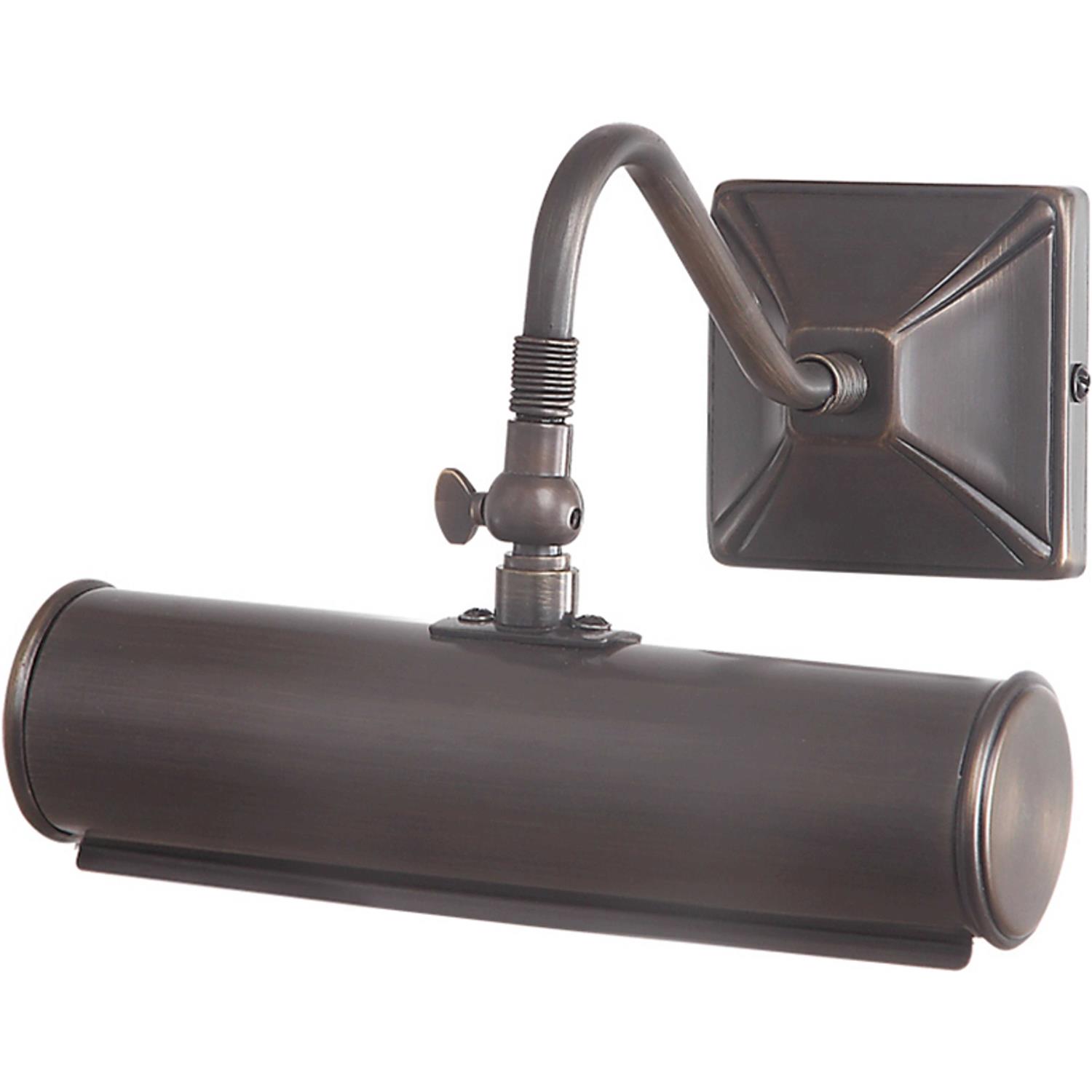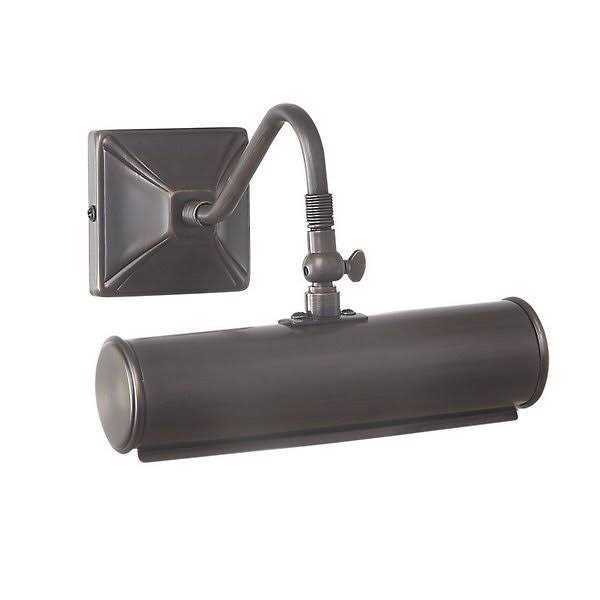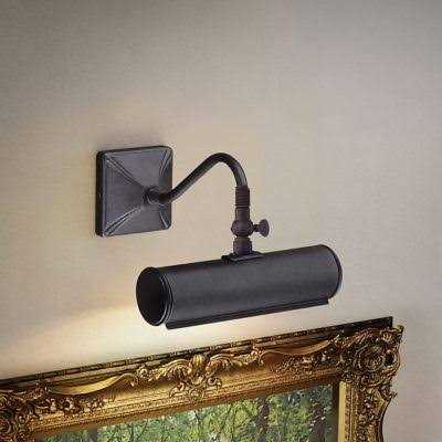 The Leo Picture Light from Lucas McKearn defines one’s wall-hung pictures with even lighting and an understated design. This transitional piece gives off an antique style through its hardware detailing. Mounting with a beveled backplate, a slender arm comes forward with a joint mechanism that allows the lamp head to tilt up and down. While lit, the long lamp head eliminates glare while giving a clean, soft glaze to one’s framed art pieces.