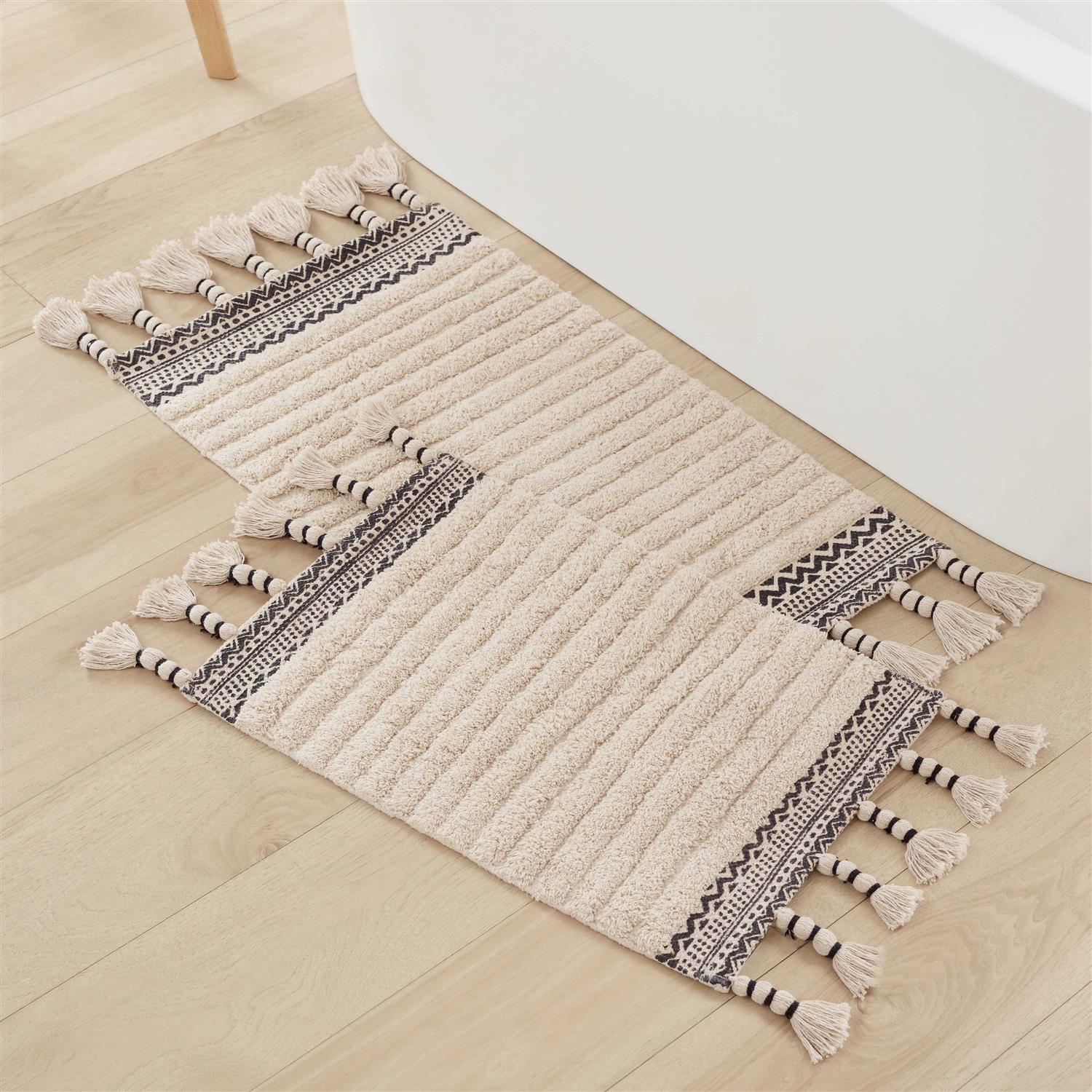 There is nothing quite like stepping on a cloud after a warm shower or bath, and the overstuffed cotton fringe bath rug collection gives you the perfect, luxurious landing for your bare feet. This boho, invigorating tufted rug is the plushest accessory that you’ll add to your bathroom’s decor. Combine functionality and style with these bath rugs as they’re not only super absorbent but also fast-drying, so you’ll never have to worry about stepping on a soggy rug again. Choose from a variety of styles and colors from this bath collection to elevate your space.