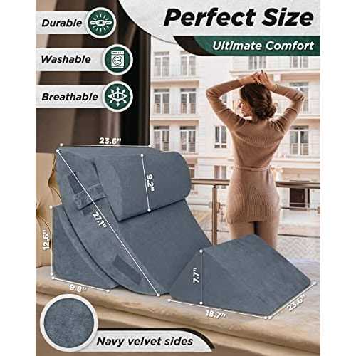 Wedges & Body Positioners by Lunix. Details:While other bed wedge pillows are way too firm & uncomfortable, don’t relieve the post-surgery pain or they slide down making it impossible to fall asleep or relax in a pain-free position, the Lunix bed wedge pillow set is made of premium 45D memory foam to quickly adapt to your body shape and height. The unique velcro strap on the head pillow stops it from sliding and provides hours of comfort.