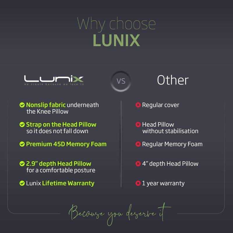 About The Item: While Other Bed Wedge Pillows Are Too Firm And Uncomfortable, Fail To Relieve Post-surgery Pain Or Slide Down Making It Impossible To Fall Asleep Or Relax In A Pain-free Position, The Lunix Lx5 4pcs Orthopedic Bed Wedge Pillow Set Is Made Of Premium 45d Memory Foam To Quickly Conform To Your Body Shape And Height. The Head Pillow’s Unique Velcro Strap Prevents Slipping And Provides Hours Of Comfort. Kids Can Enjoy It As Well! You Deserve Painless And Relaxing Days! If You Want T.