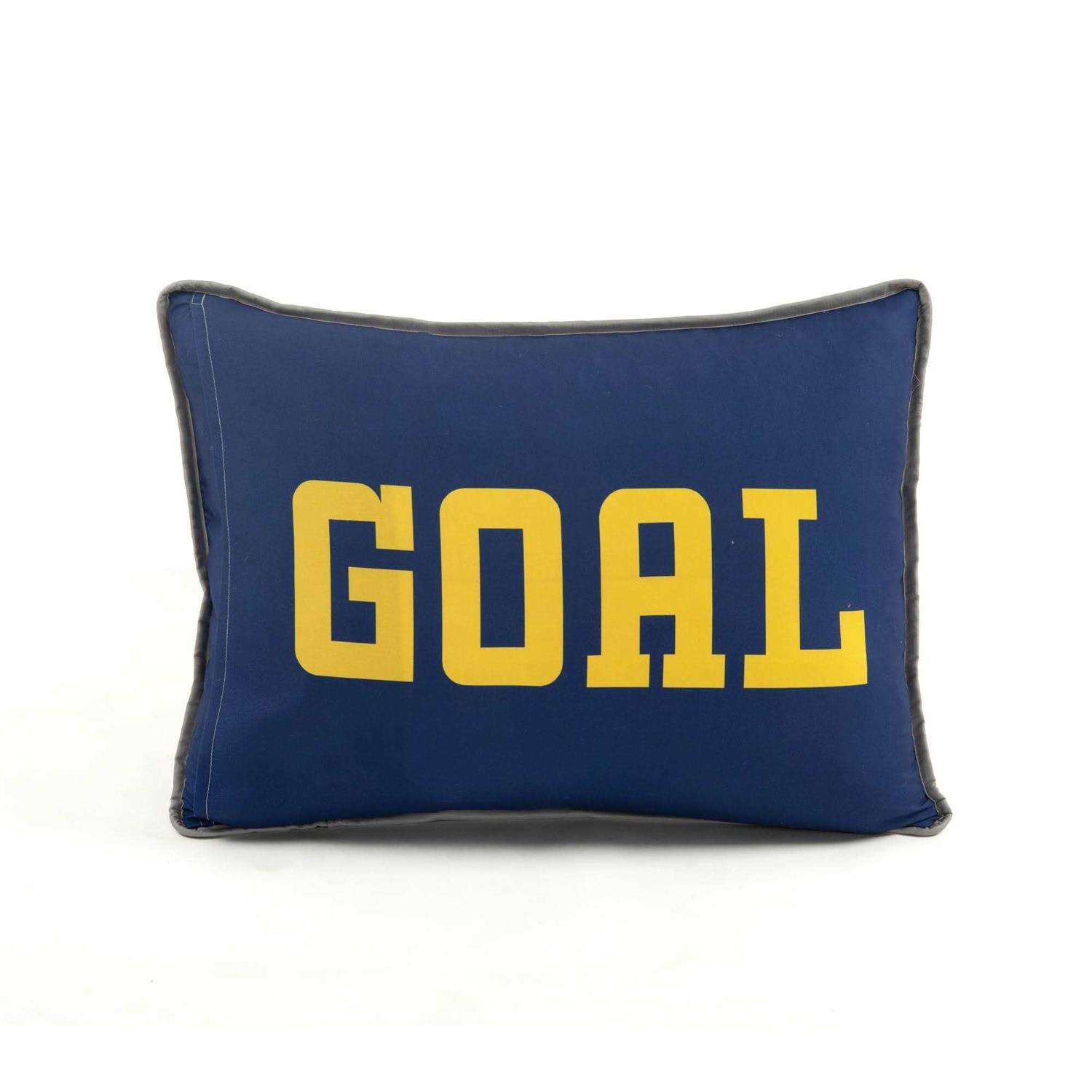 There’s nothing your little soccer star will love more than coming home to a bedroom decorated with their favorite sport. Oversized for their comfort and reversible for their style, they’ll love the year round comfort this quilt set has to offer. Your little one’s room is about to get a major sporty makeover! This cool and trendy soccer field reverses to an exciting graphic design for their athletic style. The five piece set includes one oversized quilt, two shams, and two decorative throw pillows. With this lightweight polyfill quilt, your child can dream of being a soccer superstar all year round. Each sham has a standard envelope opening for your convenience. Please refer to label for full care instructions.