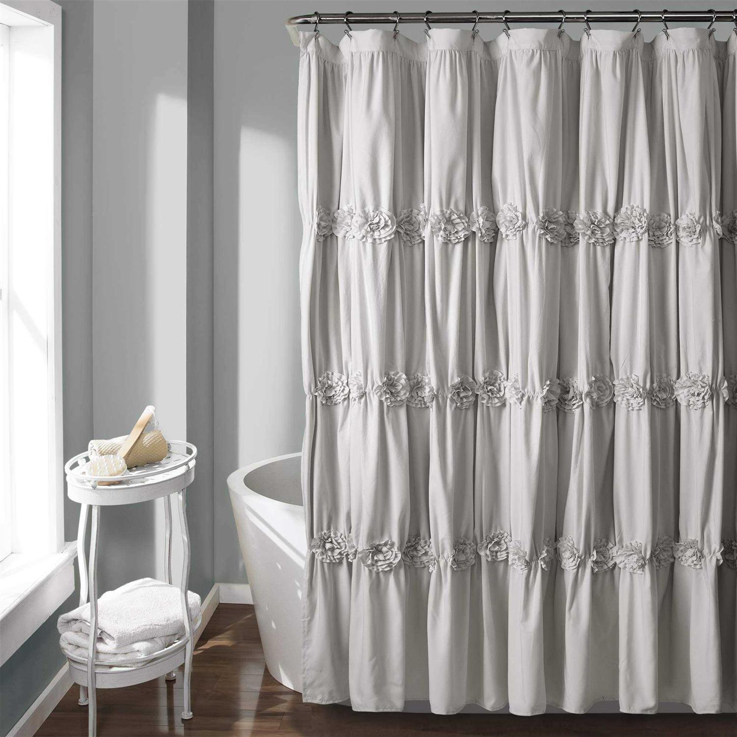 Lush Decor is known in part for its large selection of shabby chic shower curtains. The Darla Shower Curtain is one of our most popular. Pretty, elegant, and unique are all words that describe this shower curtain. With details such as ruching and crafted flowers, the Darla Shower Curtain can change the whole look of your bathroom without overwhelming it. Our Darla Shower Curtain will have an immediate impact on your master bathroom or guest bathroom. It can even be used to brighten up your young daughter’s bathroom. With such a beautiful and romantic design, this shower curtain offers incredible value and flexibility. Measuring 72 inches wide by 72 inches tall, its the perfect size for just about any bathroom. It’s soft to the touch and will hold up well even in the most humid bathroom conditions. However, due to the delicate nature of the floral embellishments, the Darla Shower Curtain should only be dry cleaned.