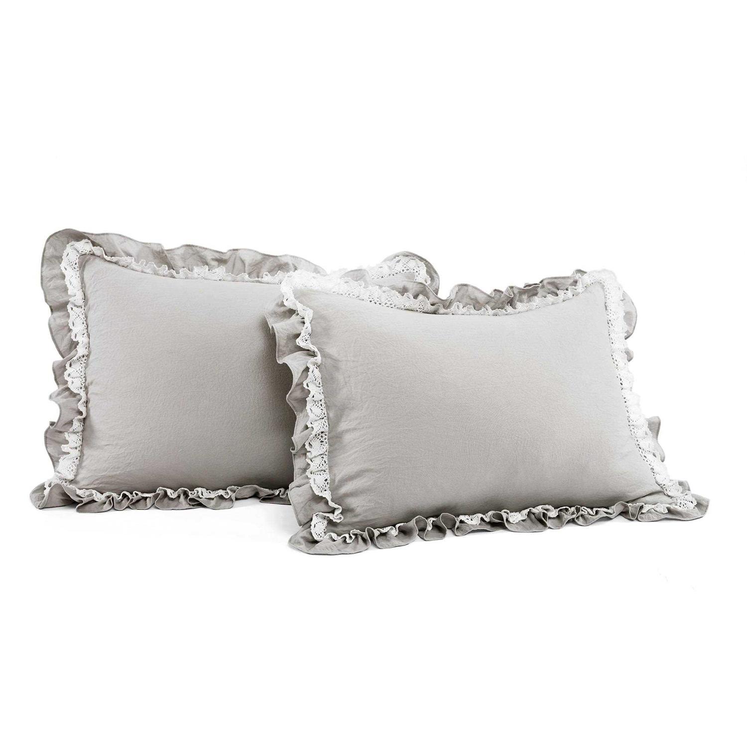 Give your bedding a makeover that retains elements of your childhood while catering to a sophisticated style with this Ruffle Comforter Set. It’s made of 100 percent polyester with 100 percent polyester fill for enhanced warm and comfort. The Lush Decor comforter set features layers of elegant ruffles topped with a single row of lace trim for added visual interest. The minimalist style makes this a suitable addition to a wide range of bedroom decors including traditional, French Country, farmhouse or shabby chic themes. The three-piece bedroom comforter set includes one comforter and two matching shams. It’s available in multiple colors and sizes ranging from Twin-XL up to King.
