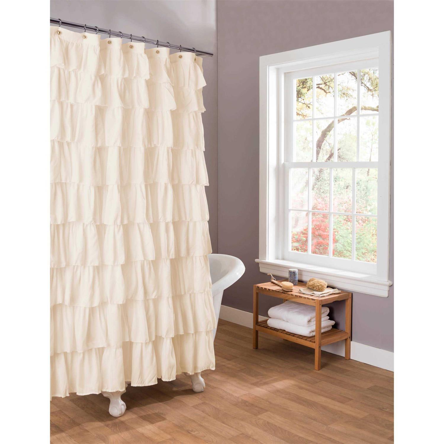 This curtain will immediately enhance the look of the master bathroom or guest bathroom. The ruffle detail adds a feminine touch as well as eye-catching texture to instantly improve the look of your space. This Ruffle Shower Curtain is perfect for those who love shabby chic style and fancy, frilly home decor. It’s simple yet feminine design creates a soothing atmosphere, ideal for relaxing at the end of a long day of work. Along with the design, the fabric is soft and lovely and will make your bathroom feel like you’ve just entered a spa. Measuring 72 inches wide by 72 inches tall, this Ruffle Shower Curtain is the perfect size for just about any bathtub. This style is available in many color options. It easily hangs with any shower curtain rings or hooks. The material is thin, so adding a liner is highly rmended. Due to the delicate nature of the ruffles, this shower curtain is dry clean only. Part of the Ruffle Collection.