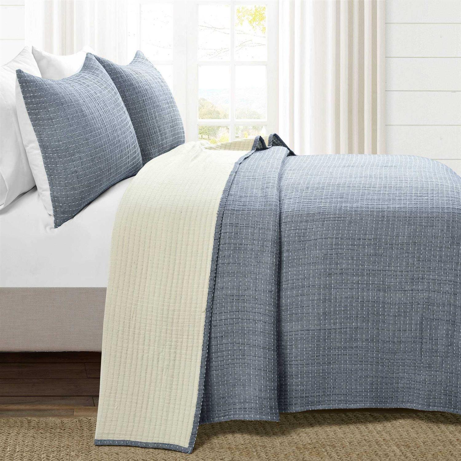 Lush Decor Solid Kantha Pick Stitch Yarn Dyed Cotton Woven Quilt/Coverlet