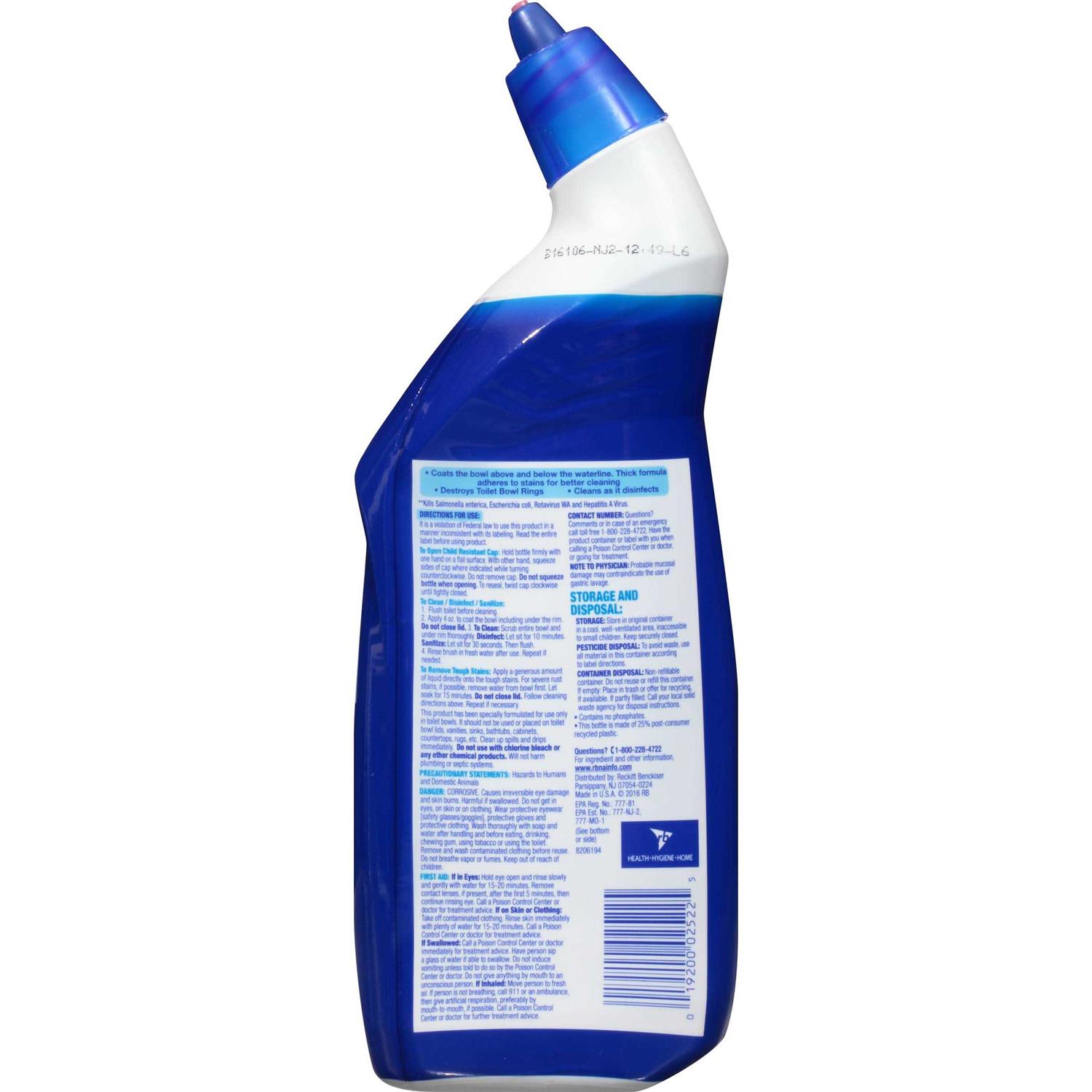 The thick formula sticks to the bowl for better cleaning. This liquid toilet bowl cleaner kills 99.9% of viruses & bacteria with complete clean power. The angled bottle targets hard-to-reach areas, including under the rim, to leave your entire toilet bowl sparkling clean, deodorized and disinfected.