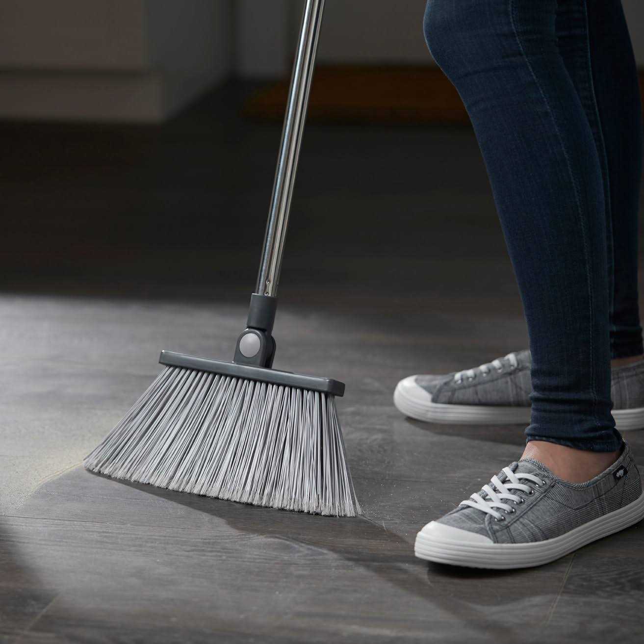 Upgrade your collection of cleaning supplies with a Rotating Floor Broom and Standard Dust Pan Combo from Made by Design . This 53-inch broom features a wide brush head with fine bristles that catch dirt, dust and debris, and the brush is attached with a rotating fixture that makes it easy to clean corners and hard-to-reach spaces. The metal handle has plastic grips for added comfort, and it’s finished with a simple loop that provides an option for hanging storage.