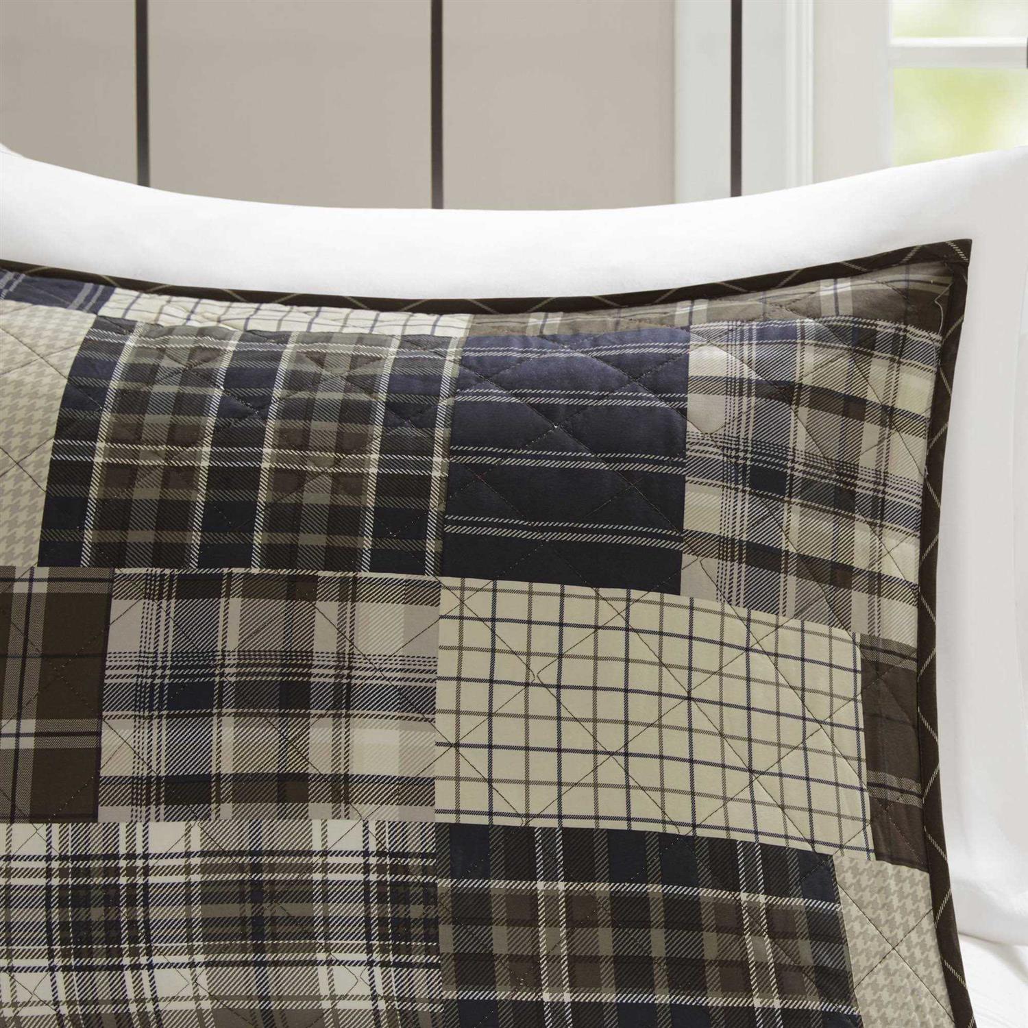Rich in color, the Hilltop 3 Piece Reversible Printed Coverlet Set offers a lodge style update for your bedroom. This reversible rustic coverlet features a patchwork print, in bold hues, for a cabin-inspired look. The solid reverse showcases a clean and inviting all-over windowpane print to complement the top of the coverlet. Zipper closures on the 2 matching reversible shams create a clean finished edge, while cotton-rich filling and channel quilting provides a soft hand feel. Machine washable for easy care, this reversible coverlet set brings a warm cabin look to your bedroom decor.