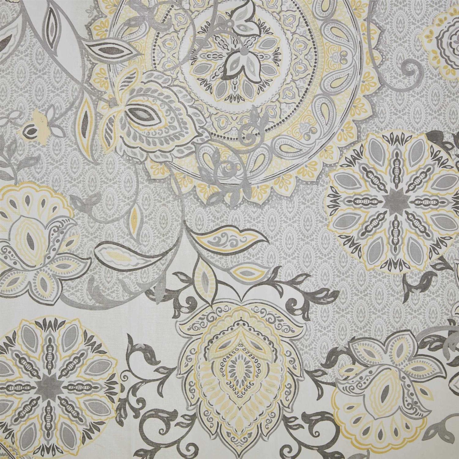 This printed shower curtain flaunts a beautiful floral and medallion motif in soft blue and neutral watercolor hues. While the 100% cotton percale base adds natural appeal for an organic touch to any decor. Machine washable for easy care, this shower curtain is also OEKO-TEX certified meaning it does not contain any harmful substances or chemicals, for the best in quality comfort and wellness. Each shower curtain measure 72 inchx72 inch and is finished with 12 button holes at the top making it easy to hang; hooks, rod, and a water repellant liner are not included and will need to be purchased separately.