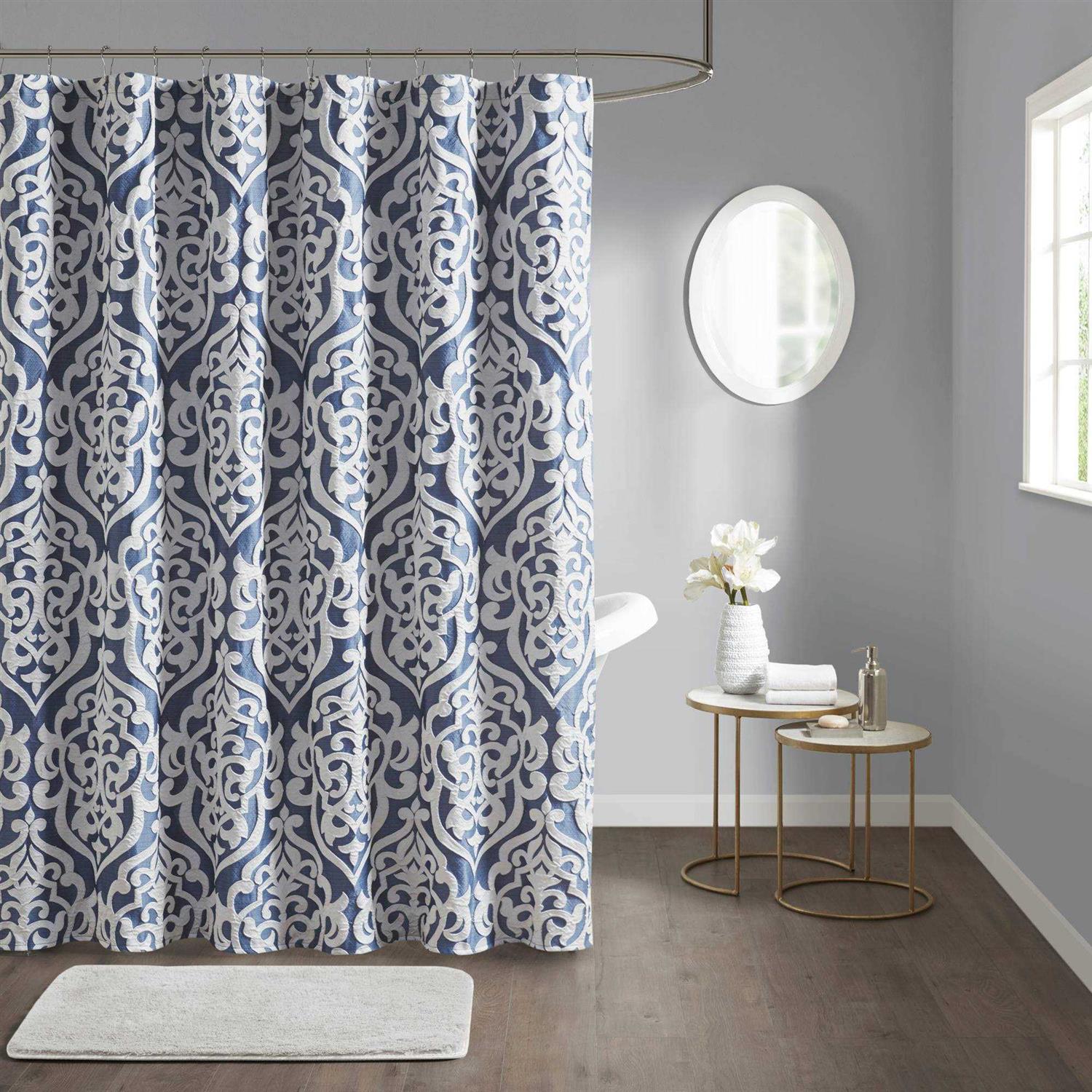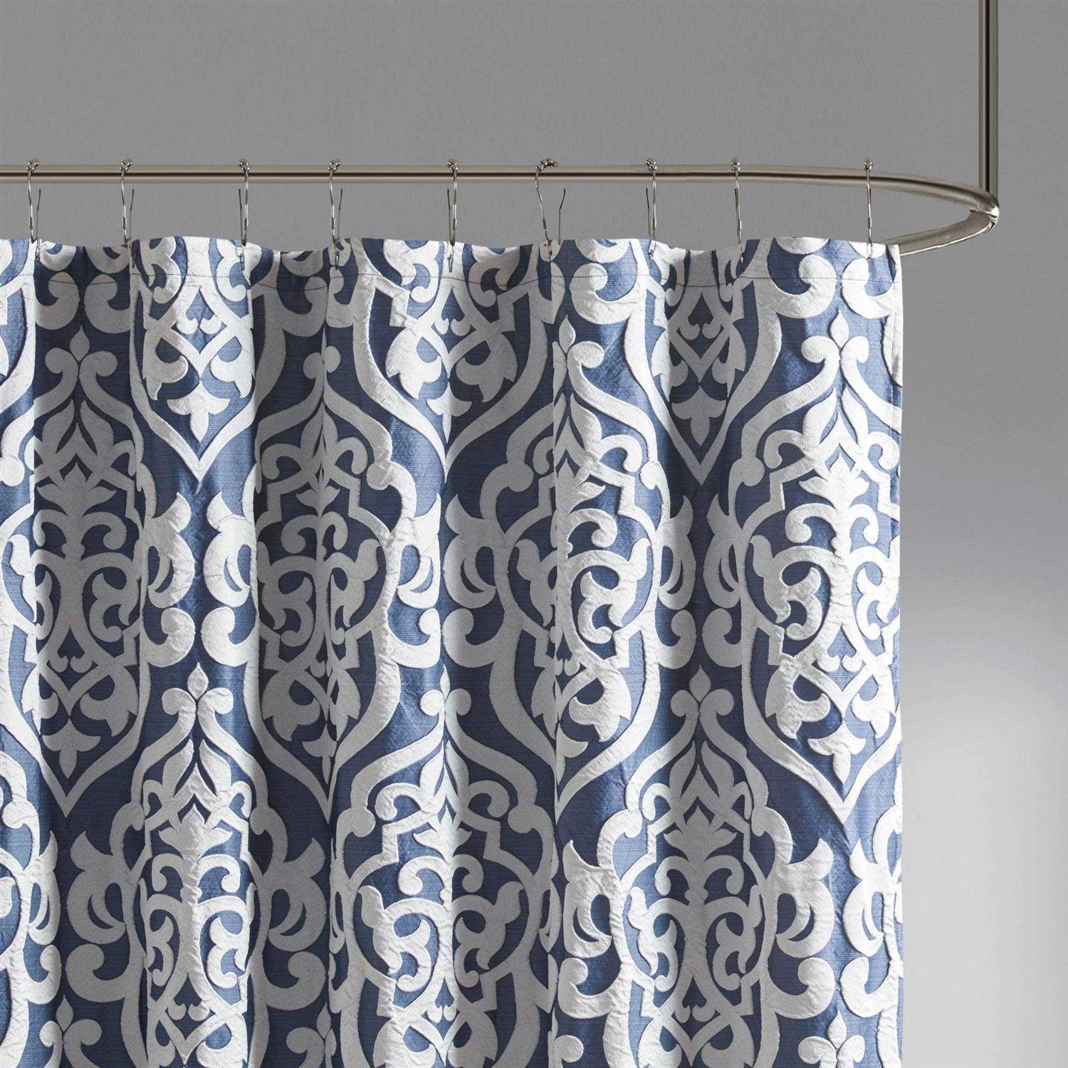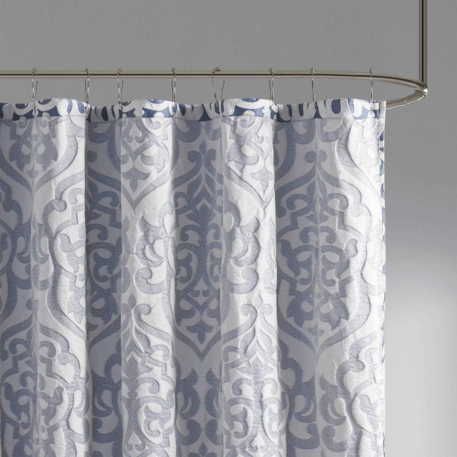 Add a touch of class to your bathroom with our Eliot Jacquard Shower Curtain. This luxurious textured shower curtain flaunts a gorgeous damask medallion design on a stria jacquard ground that adds rich texture and dimension to the lavish look. Measuring 72×72″, each shower curtain is finished with 12 button holes on top making it easy to assemble hooks and hang onto rod (hooks and rod not included). To better preserve this beautiful shower curtain, a water repellant liner is highly rmended and can be purchased separately (liner not included). Machine washable for easy care; complete the collection with coordinate matching bedding, alas available and sold separately.