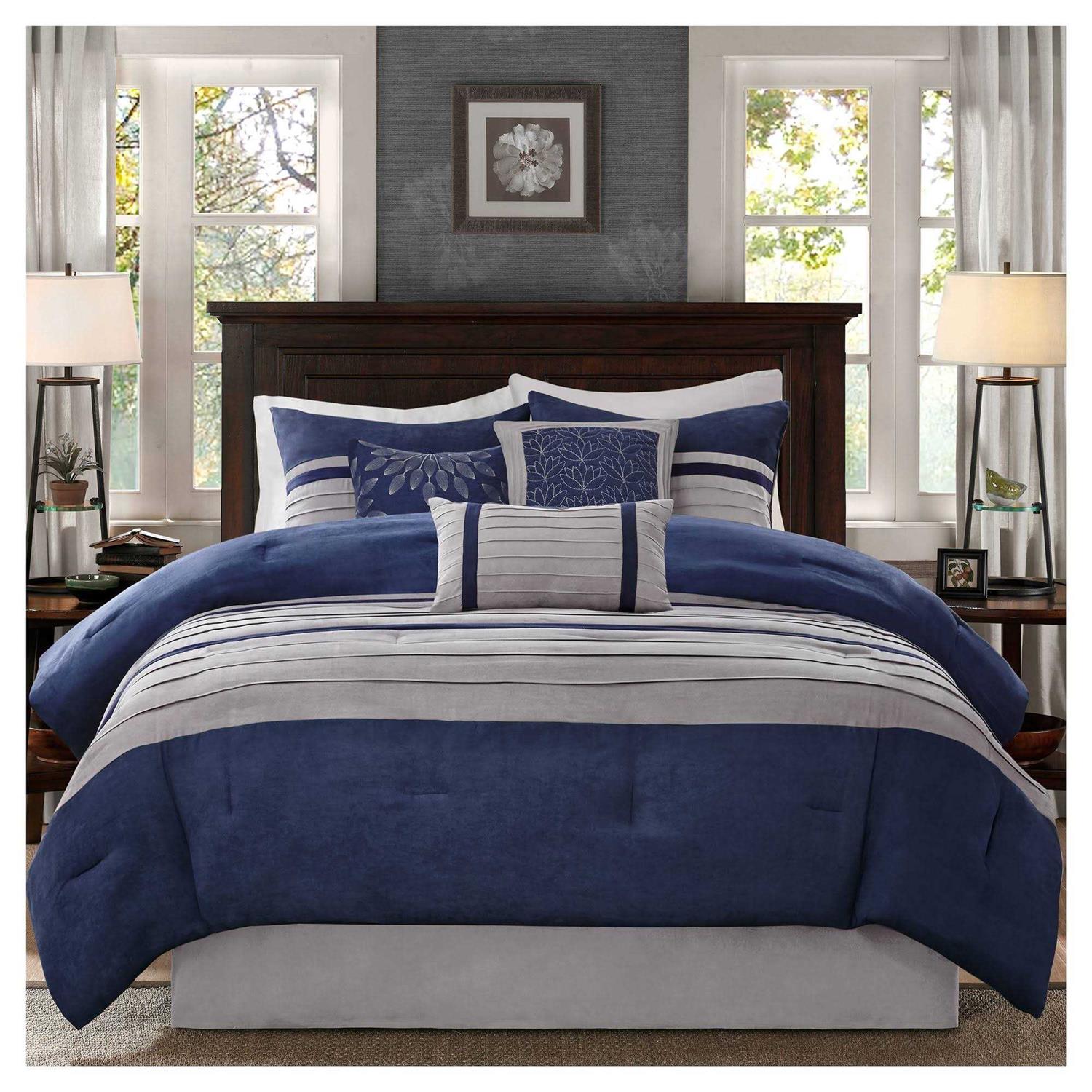 The Dakota 7 Piece Comforter Set offers a classic and refined update to your bedroom decor. This transitional style comforter features a pieced microsuede design in rich contrasting colors to create an incredibly soft look and feel. The 2 matching shams also flaunt a pieced construction to coordinate with the faux suede comforter. A solid bed skirt and 3 decorative pillows with a mix of embroidered designs add the perfect finishing touches to complete this lush traditionally-inspired comforter.