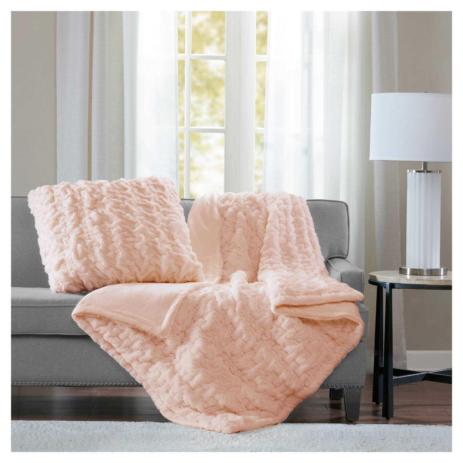 Madison Park Ruched Fur Throw