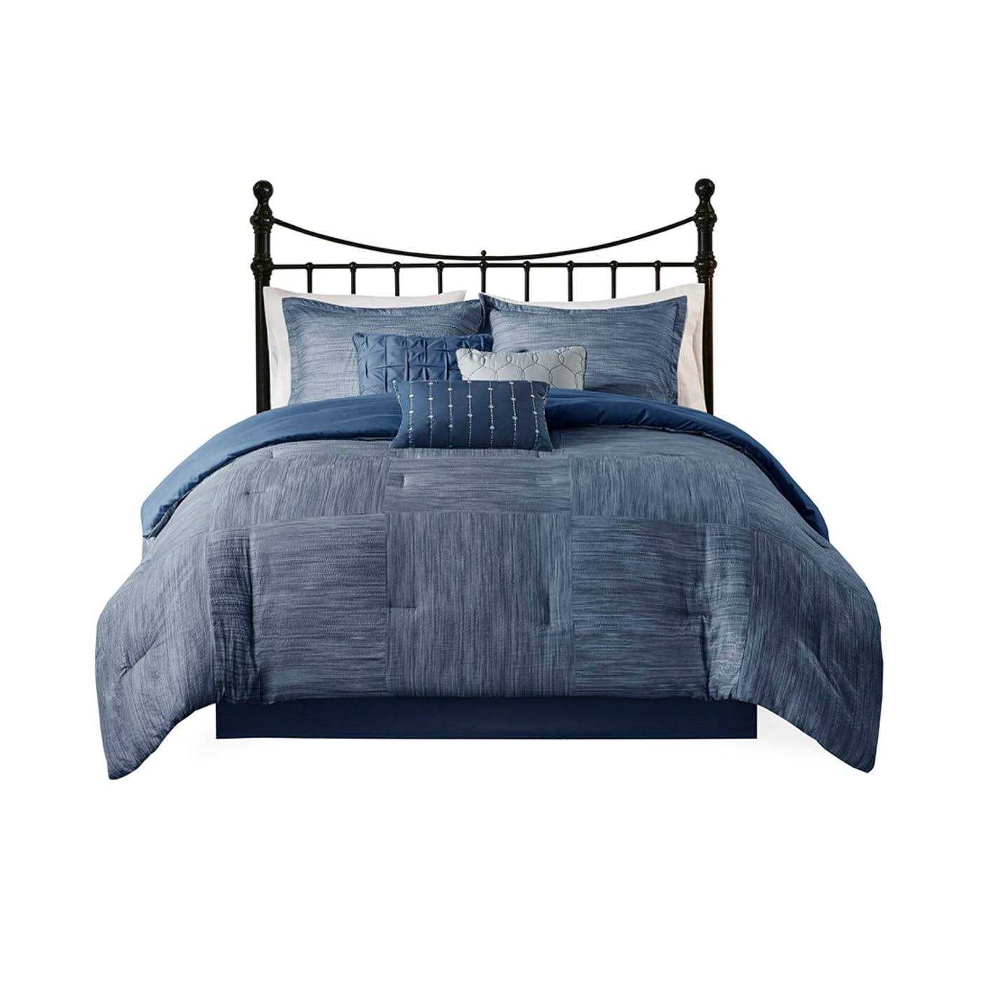 100% Microfiber The comforter set features a pieced, textured printed seersucker weave design for an updated transitional allure. A 7 Piece Printed Seersucker Comforter Set offers a chic modern update to your bedroom. Microfiber fabric is a really soft fabric that is naturally wrinkle and shrinkage resistant. Set includes: 1 Comforter:90″W x 90″L, 2 Standard Shams:20″W x 26″L + 1.5″D, 1 Bedskirt:60″W x 80″L + 15″D, 3 Dec Pillows:16″W x 16″L/12″W x 18″L/18″W x 18″L Care instructions: Comforter/Sham:Machine Washable, Pillows:Spot Clean