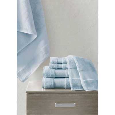 Elevate your bathroom decor with the luxuriously soft and indulgent comfort of our Madison Park Turkish cotton bath towel set. These oversized cotton towels are made from smooth low-twist yarns with 600gsm weight, creating a soft and plush hand feel that is also highly absorbent for the ultimate in luxury. Each towel features a dobby border and end hem to add a classic, yet refined touch to the design; while also Oeko-Tex Certified for superior quality towel. Transform your bathroom into a relaxing spa-like retreat with this luxury complete 6 Piece bath towel set. 100% Turkish Cotton Premium 100% Turkish Cotton Bath 6 piece towel set 600 gsm weight, for luxuriously oversized premium quality and smooth cotton threads for exceptionally plush and soft hand feel Low twist yarn is made in finest and longer Turkish cotton fibers, making these towels the ultimate in luxury while highly absorbent and inherently stronger for enveloping comfort Made with a classic 1 Dobby border and end hem makes for a classic and refined finished touch Oeko-Tex Certified, includes no harmful substances or chemicals Dobby trim offers a classic, refined touch Due to the absorbency of the low twist construction that uses less cotton, these towels will wash easily using less water and dry quicker resulting in reduced energy usage Do not use bleach, fabric softeners, or iron the towels as it may damage overall softness and quality New towels tend to lint at first but after several washes, lint will diminish. Towels should be washed separately to minimize lint.
