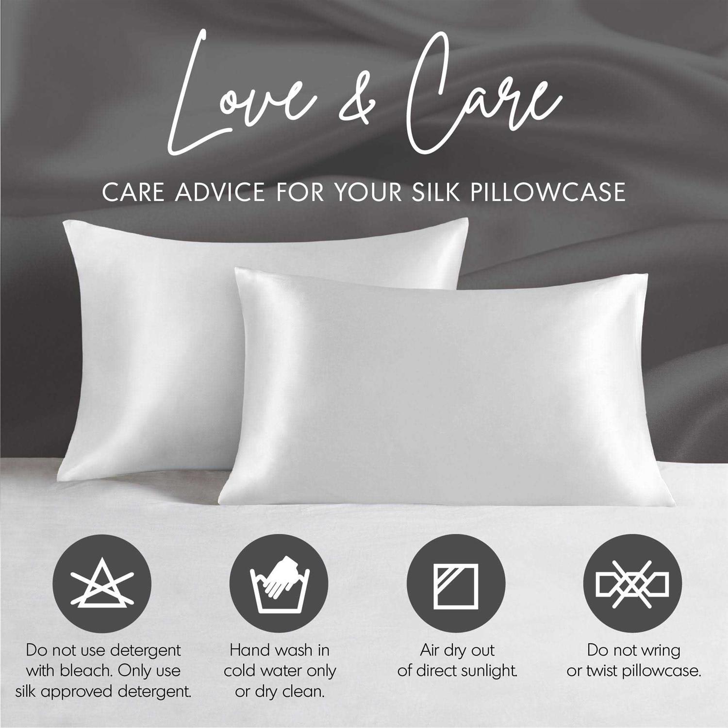 Add a touch of elegance to your bedding set with the Madison Park Silk Single Pillowcase. This natural white silk pillowcase is made from 25 momme, 100% Mulberry silk and features a hidden zipper closure, for a clean finished look. This pillowcase is also OEKO-TEX certified, meaning it does not contain any harmful substances or chemicals to ensure quality comfort and wellness. Hand wash only. PRODUCT DETAILS Standard 1 Pillowcase: 20″W x 26″L FEATURES 25-Momme mulberry silk single pillowcase Provide smooth surface and reduce friction to sleep on – benefits for your hair and skin Hidden zipper closure at the side Oeko-Tex Certified, no harmful substances or chemicals Hand wash inside out in cold water MATERIAL 100% Mulberry silk 25mm CARE INSTRUCTION Hand wash pillowcase in cold water. Do NOT BLEACH.