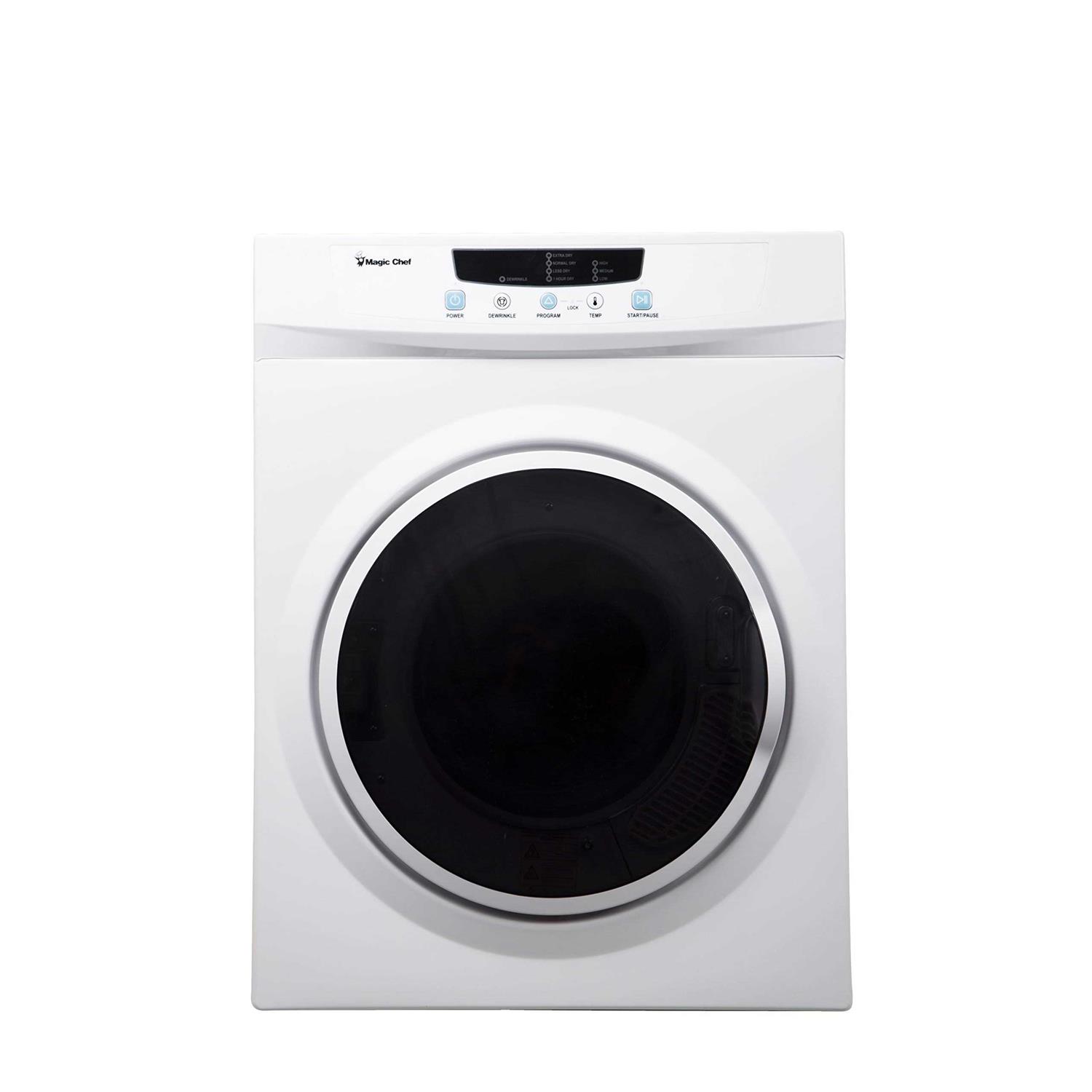 Magic Chef You love your apartment. It’s your own space away from the bustling noise and busyness of the city. It’s already a home to you, but why not make it more of a home with a Magic Chef 3.5 Cubic Feet Compact Laundry Dryer? Say “goodbye!” to carrying your clothes to and from your laundromat and killing time as you wait for them to finish. Instead, you’ll be able to pop your wet clothes in, chill on the couch, and check back later to find them dry and ready to wear. You’ll be saving time and quarters. With this dryer, you’ll get 4 drying programs and 3 heat settings to get the perfect dryer setting for your load. It also features a de-wrinkle program that can be added to every cycle to ensure your clothes come out wrinkle-free every time. Give your walk up a thumbs up with a compact laundry dyer from Magic Chef!