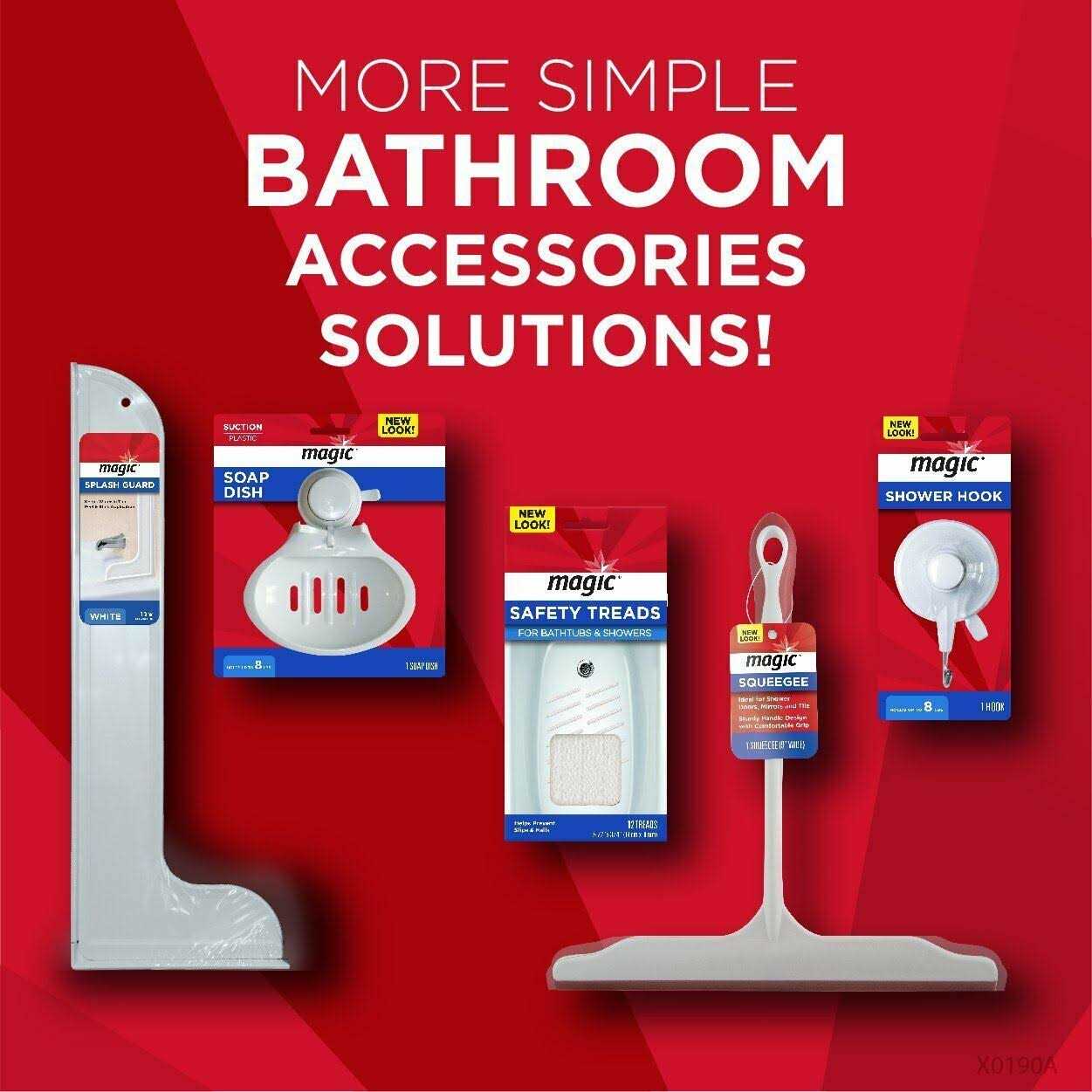 These White Magic Splash Guards help your bathroom floors stay dry and mildew-free so you get a cleaner environment with a lower risk for slips and falls. The accordion design, curtain lip and industrial-grade adhesive work together to prevent water from escaping from the tub. If you have little ones who love to splash in the shower or bath, this tool will help save you the time and energy of cleaning up after them. With this large splash guard, you’re only two steps away from water-free floors. Just peel the backing, stick the guards to the shower wall and no more leaks. The pieces bond instantly, and installation requires no tools or glue.