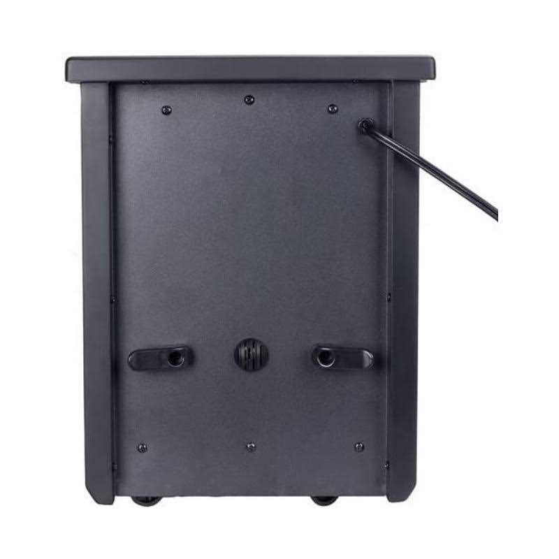 The Mainstays 1500W 4-Element Infrared Quartz Heater a sleek silver front panel for a simple and modern design. With its front air intake design, this heater can be placed against the wall out of the way. The digital display screen shows the temperature and timer, so you can adjust it to your perfect temperature. The remote control makes it easy to adjust your settings without getting up. The heater has convenient remote control storage, two handles for easy portability, and caster wheels for easy movement from room to room. The high heating power reaches 1500 watts and warms the room temperature to 90 degrees Fahrenheit, while the ECO setting mode maintains a cool 68 degree Fahrenheit room temperature. It automatically powers on or off with the 12-hour programmable timer. This heater is designed for safe use, with an overheating and tip-over shut off safety feature. Heat your home with the Mainstays 1500W 4-Element Infrared Quartz Heater.