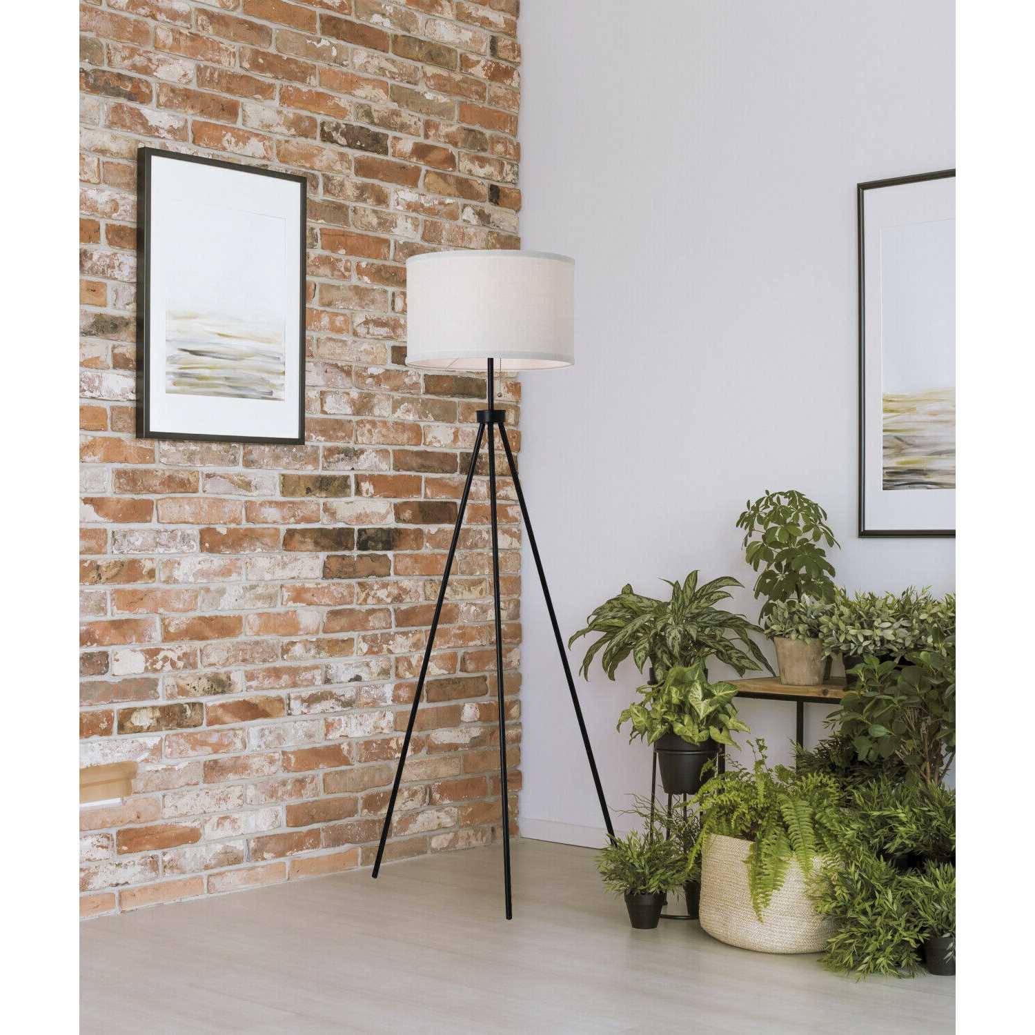 Update your decor with the Mainstays AF43495 BK Black Tripod Floor Lamp. This classic modern tripod light features three sturdy metal legs in a black finish topped with a white drum shade. The Mainstays floor lamp also includes a pull chain at the socket for easy on and off. It’s compatible with 150W incandescent and other equivalent bulbs (not included). Standing 58 inch tall, this lamp is designed to blend in with most home decor styles and is ideal in young adult dorm rooms and adult home offices. The white shade is also textured with a matching trim for added style.