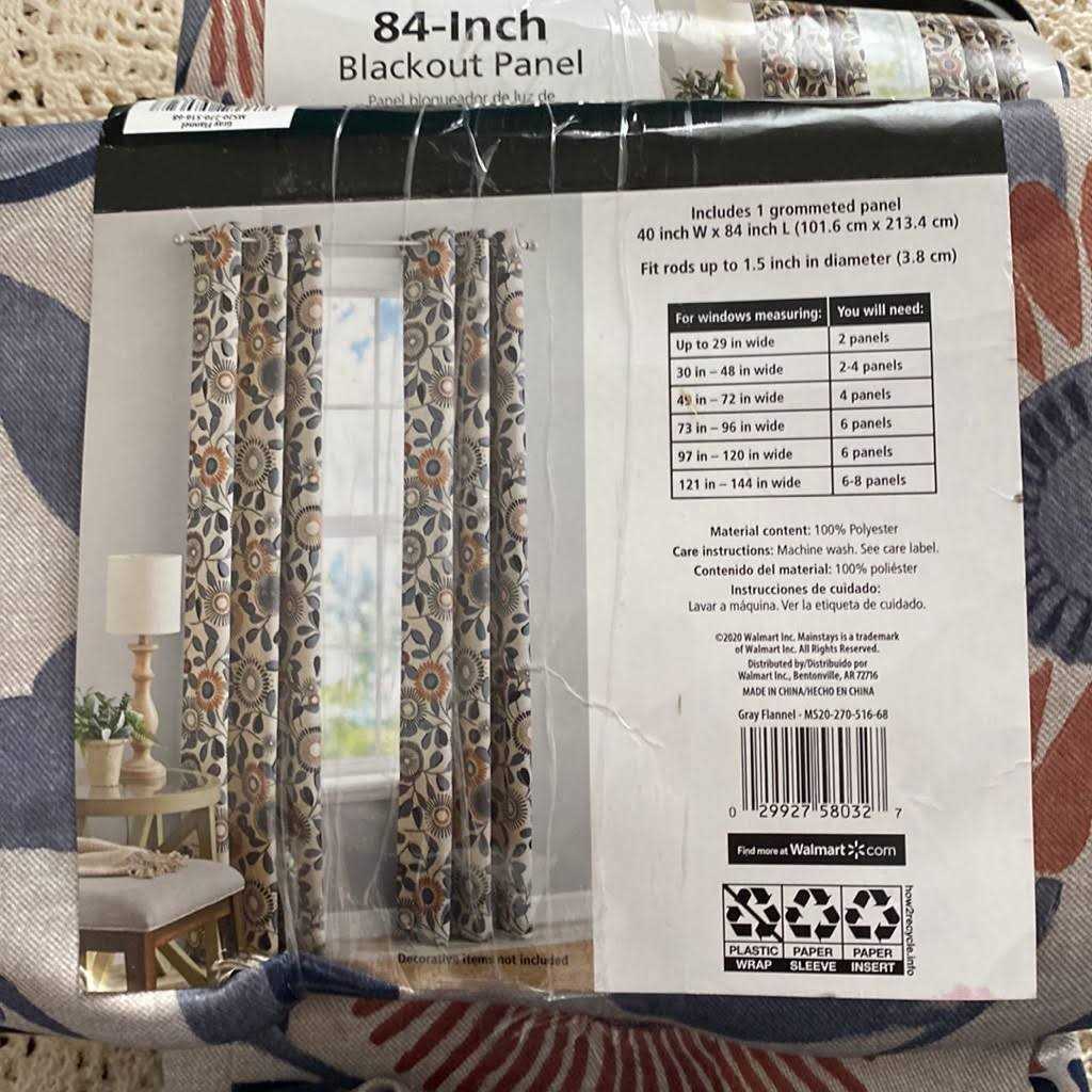 Help keep the light out with the Mainstays Blackout Energy Efficient Grommet Curtain Panel. Available in a vibrant trend right color palette that will bring to life any room! Blackout curtains are energy efficient, noise reducing, light blocking and helps keep your home cooler in the summer and warmer in the winter. The darker the color the better the light blocking capabilities. A grommet top design makes it easy to hang and style your curtains. Sold individually – one curtain panel sold per package. Hang on a rod up to 1.5 inch in diameter. Sold as individual panels measuring 40 inch width by 84 inch length. Measure carefully before selecting your desired size and quantity. Machine wash cold on gentle cycle. Use non-chlorine bleach when needed. Tumble dry on low heat.