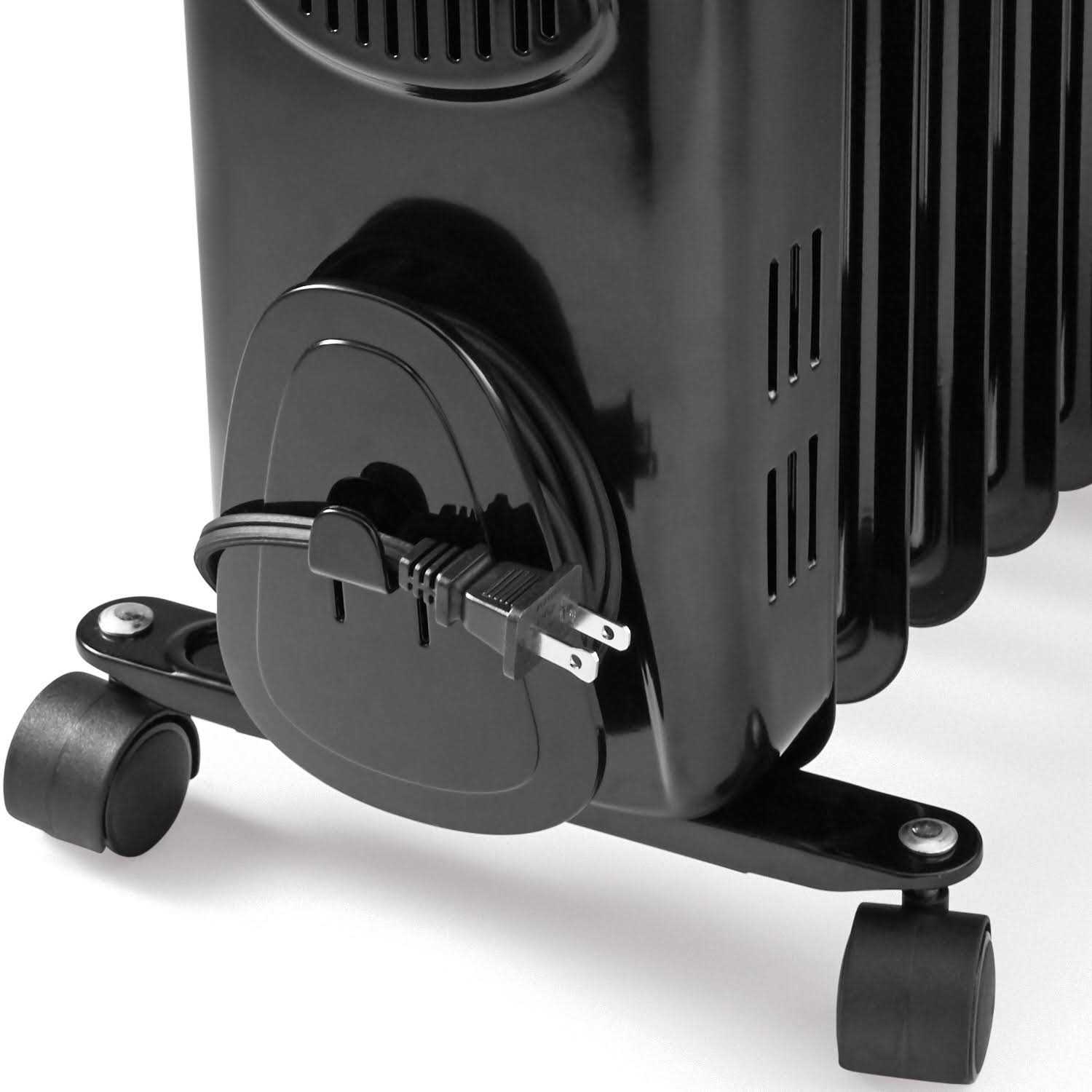 This unit features heavy duty casters, an adjustable thermostat, and a convenient cord wrap. The sleek black color will look great in any room.