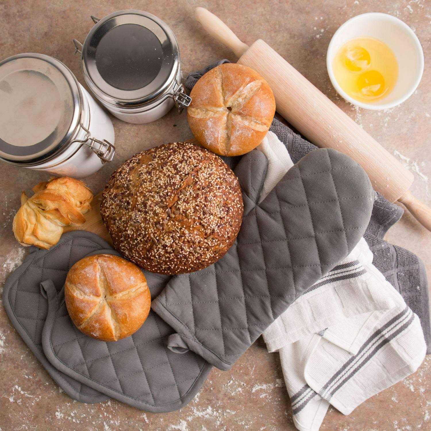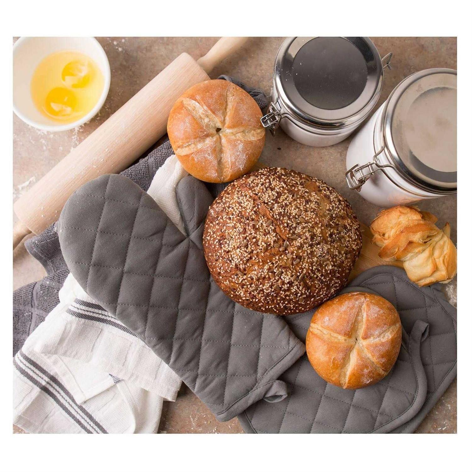 Introducing our Mainstays kitchen set collection – a must-have for every home! Crafted from 100% Oeko-Tex certified cotton, it combines style and durability. The oven mitts and pot holders feature 100 percent polyester fill, ensuring excellent heat protection and a comfortable grip. With its classic neutral hue, this set effortlessly elevates your kitchen dcor. The highly absorbent Kitchen Towels handle spills and dish drying effortlessly. Each item is designed to withstand daily kitchen tasks, promising longevity and top-notch performance. Experience the perfect blend of functionality and style, adding a touch of elegance to your culinary adventures. Get your hands on this exquisite coordinating set today and take your kitchen to the next level!