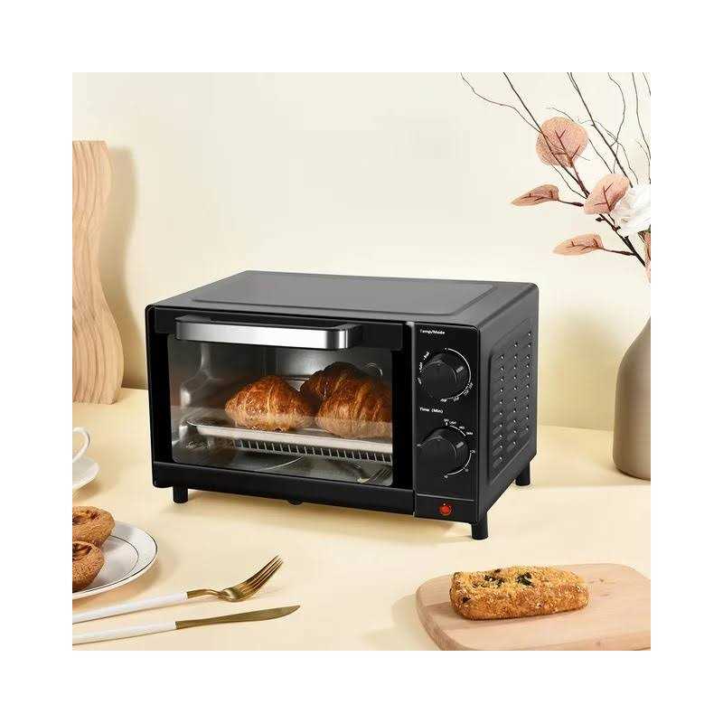 The Mainstays 4 slice Toaster Oven (MS54100112163) make your live more convenient and efficient. Perfect for preparing toast, sandwiches, pizza and much more. The Mainstays Toaster Oven can accommodate up to 4 slices of bread or a 9-inch pizza. The turn dial allows you to easily adjust the temperature mode and time settings. The compact size uses less energy and counter space and stores easily. Makes mealtime swift and smooth, especially in busy households. The sleek black finish will coordinate beautifully with existing kitchen decor and color palettes. Comes with baking rack and baking pan, simply wipe clean the oven exterior for quick and easy cleaning. Mainstays Toaster Oven is sure to become a staple in your home cooking and baking ventures, bring new experience in your daily life.
