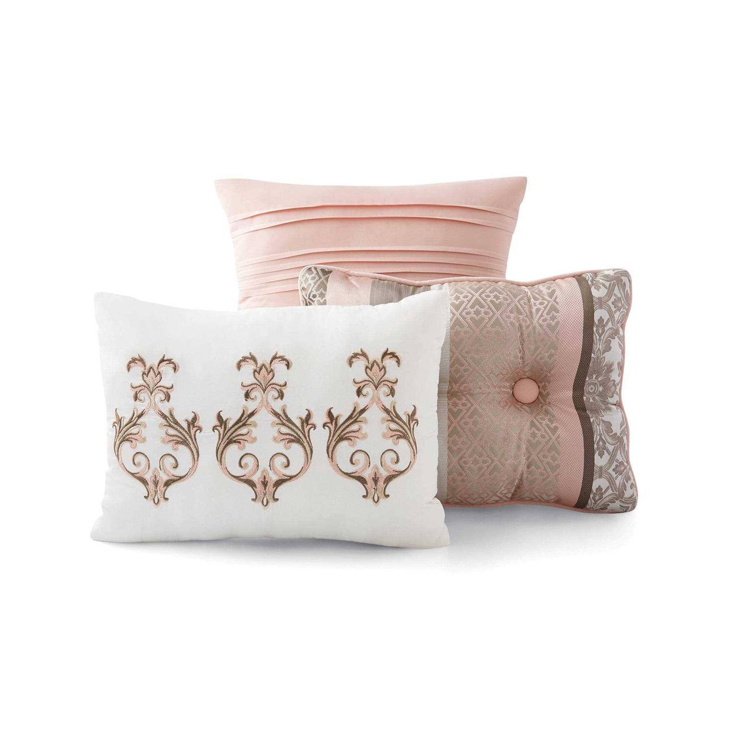 Brighten your bedroom with the Mainstays Princeton Stripe 7 Piece Comforter Bedding Set. The polyester jacquard comforter and matching shams feature a striped design with various geometric and solid patterns to create beautifully chic look. The solid reverse coordinates with the 14-inch drop solid bed skirt while three decorative pillows with embroidered details add the finishing touches. Eye-catching and soft this polyester jacquard comforter set offers a refreshing update to your bedroom dcor.