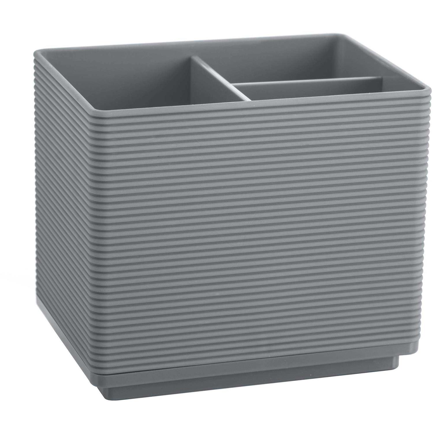 Each piece features a sophisticated, textural, horizontal ribbed design in a comfortable, soft touch finish. Use one, two or three pieces to create your own unique look or buy the entire collection for the bathroom imagined by the designer. It is offered in Balck and Grey colors that make it a perfect choice to complement any contemporary bathroom setting. The Soft Touch Collection accessories items includes: Lotion Pump, Toothbrush Holder, Wastebasket and Organizer. Made of sturdy and durable plastic. For your convenience, each piece is sold separately. Also available in Black. Hand Wash and Hand Dry.