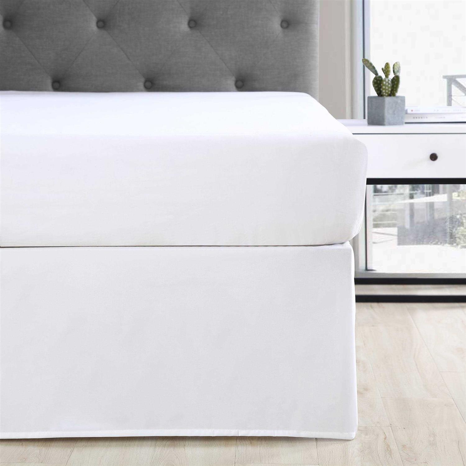 Complete your beds look with the Mainstays Solid Pleated Soft Brushed Microfiber Bedskirt. This solid bedskirt features a simple pleated design and is available in a variety of bed sizes and colors. This bedskirt (also known as a dust ruffle) has a 14-inch drop, which is designed to conceal your box spring, bed frame, and underbed storage for a tidy look. Made of soft, brushed microfiber, this decorative bedskirt is machine washable. You can keep it looking fresh by machine washing in cold water and drying on low setting.