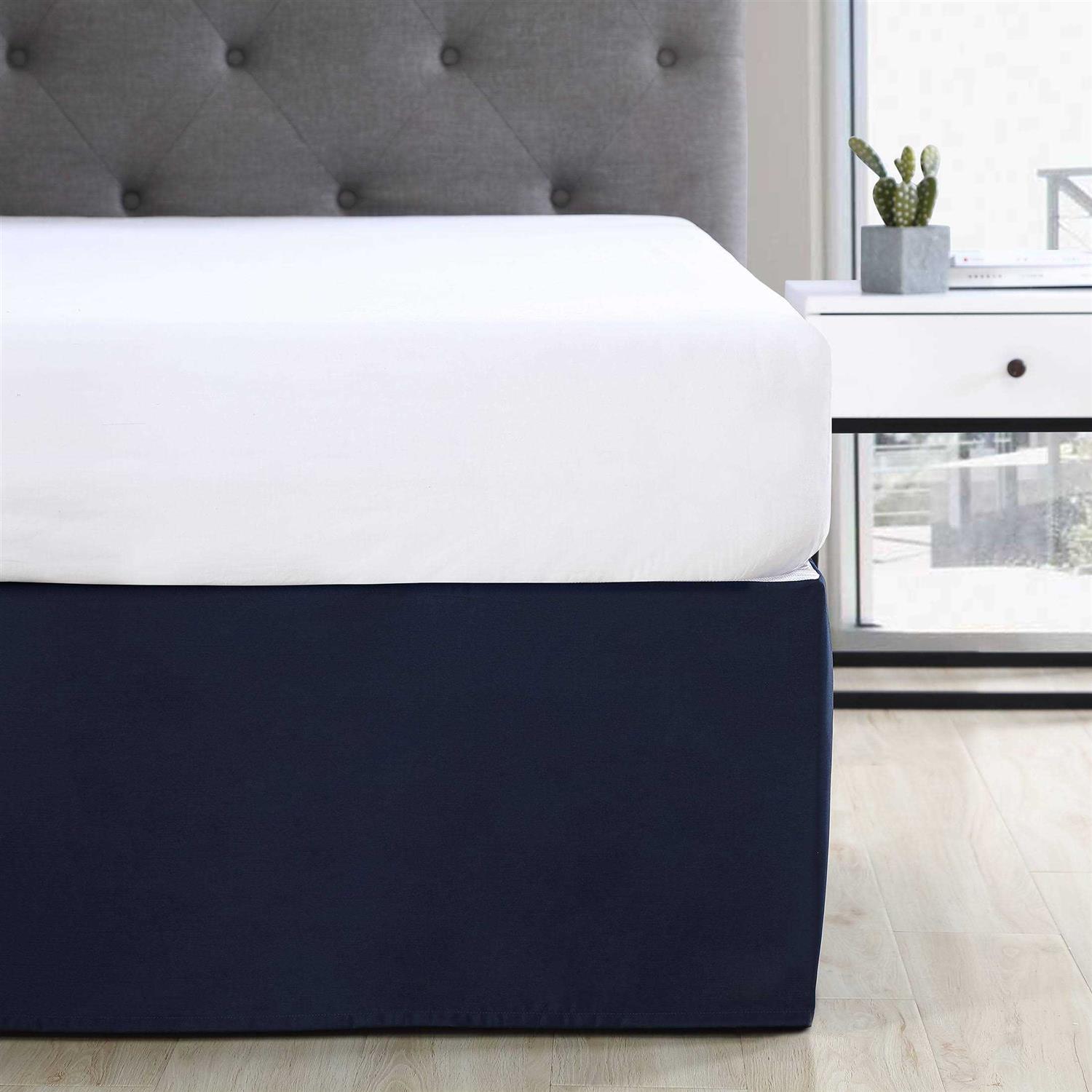 Complete your beds look with the Mainstays Solid Pleated Soft Brushed Microfiber Bedskirt. This solid bedskirt features a simple pleated design and is available in a variety of bed sizes and colors. This bedskirt (also known as a dust ruffle) has a 14-inch drop, which is designed to conceal your box spring, bed frame, and underbed storage for a tidy look. Made of soft, brushed microfiber, this decorative bedskirt is machine washable. You can keep it looking fresh by machine washing in cold water and drying on low setting.