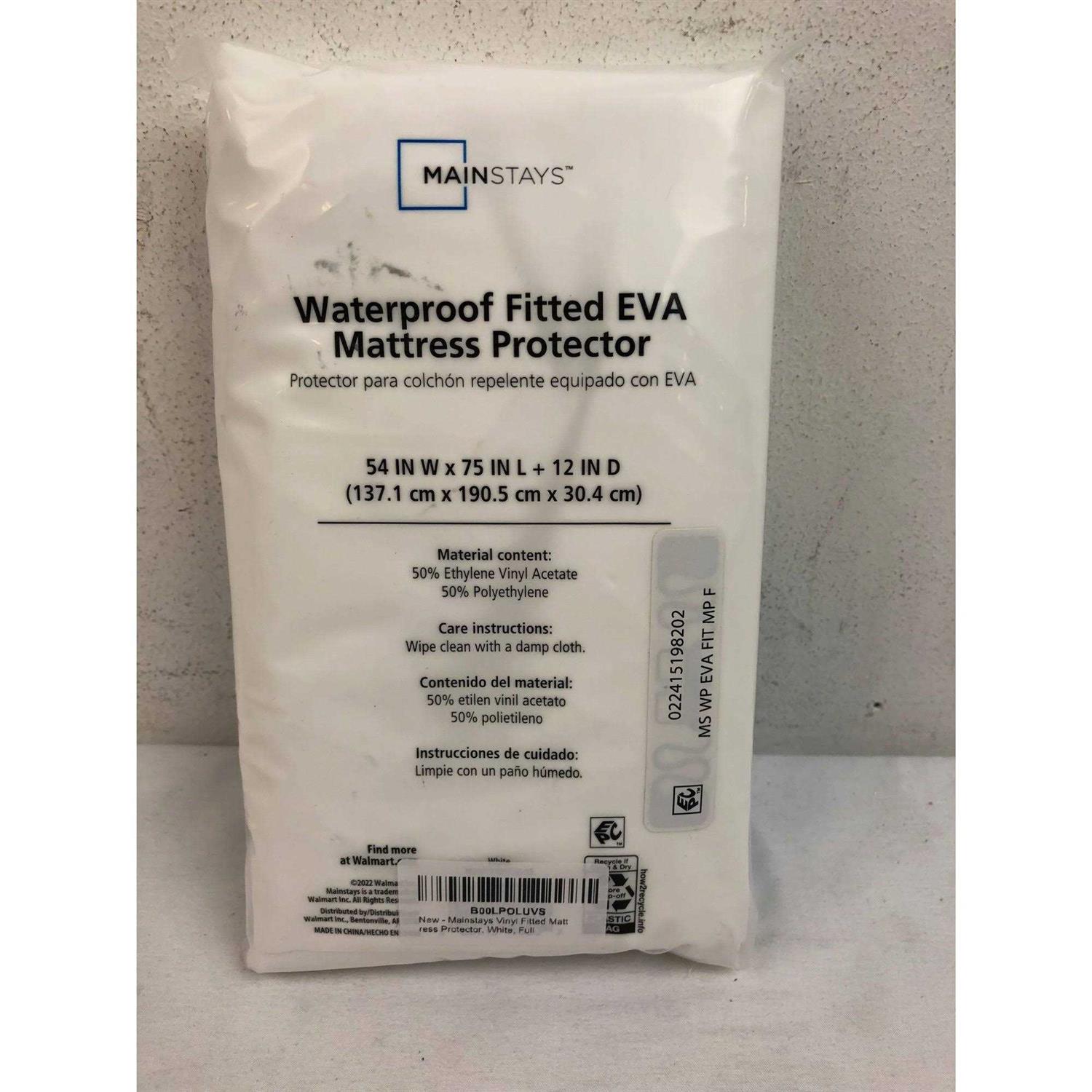 The Mainstays Waterproof Fitted EVA Mattress Protector is perfect for protecting your mattress from water, spills, and stains. It protects your mattress, prolonging its life by keeping it cleaner. Fits mattresses up to 12 inch deep. For adult and children use. This mattress protector is simple to clean, just wipe with a sanitized cloth.