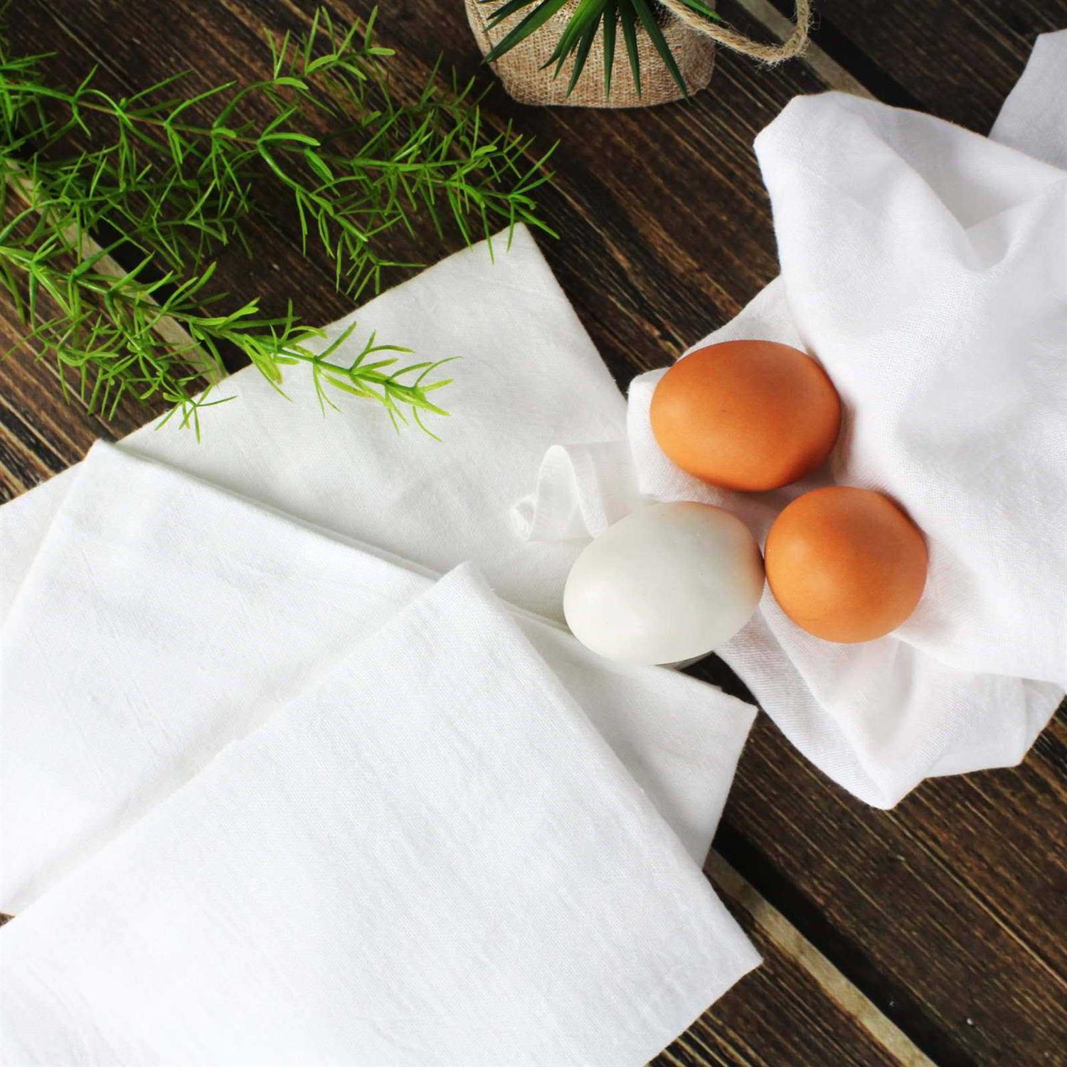 These flat woven kitchen towels are 100% cotton and measure 28 in. x 29 in. each. They are durable and absorbent and wonderful for tough kitchen clean-up. These white flat woven kitchen towels are a great gift idea for new homeowners, newlyweds or even yourself. The Mainstays kitchen towels are machine washable for easy care.
