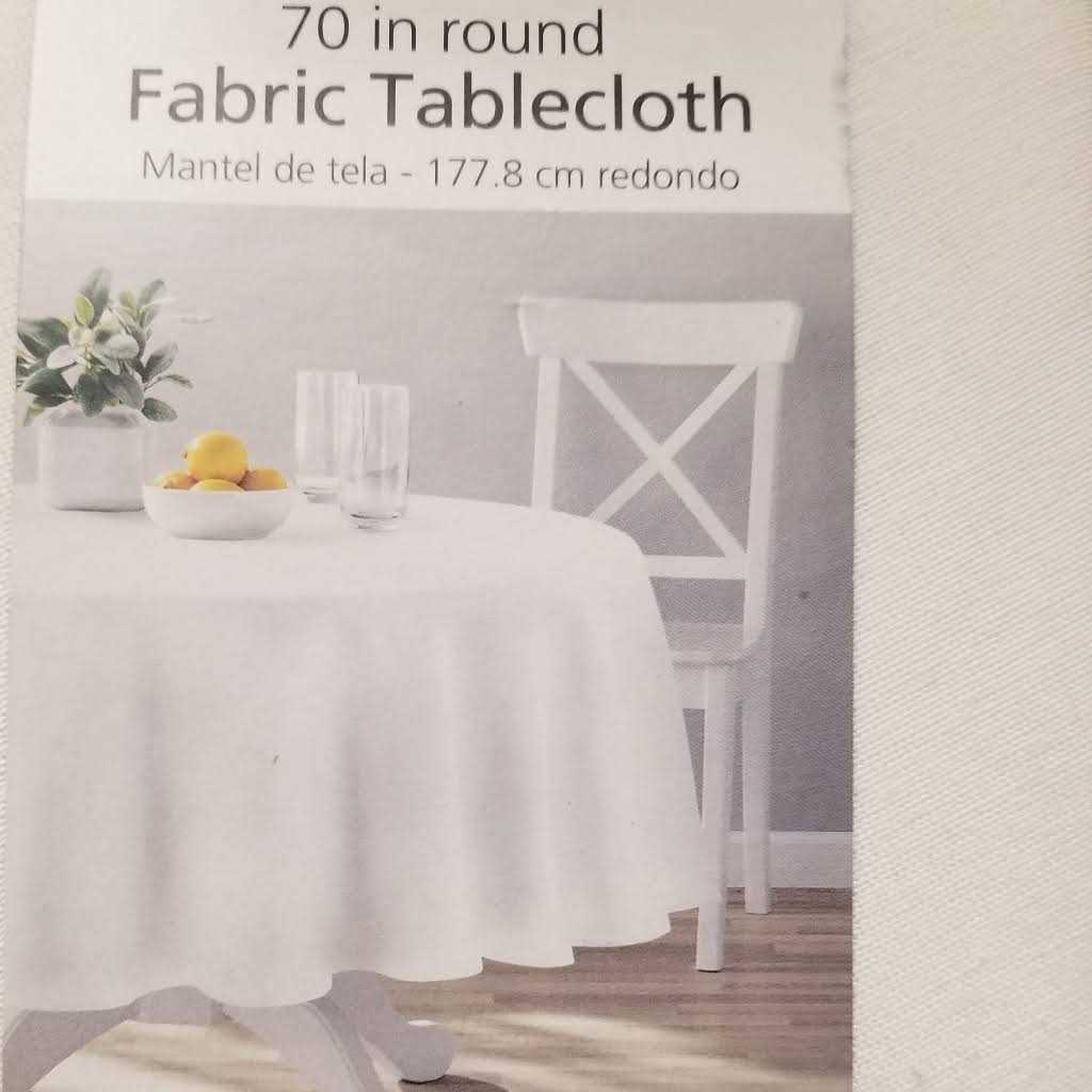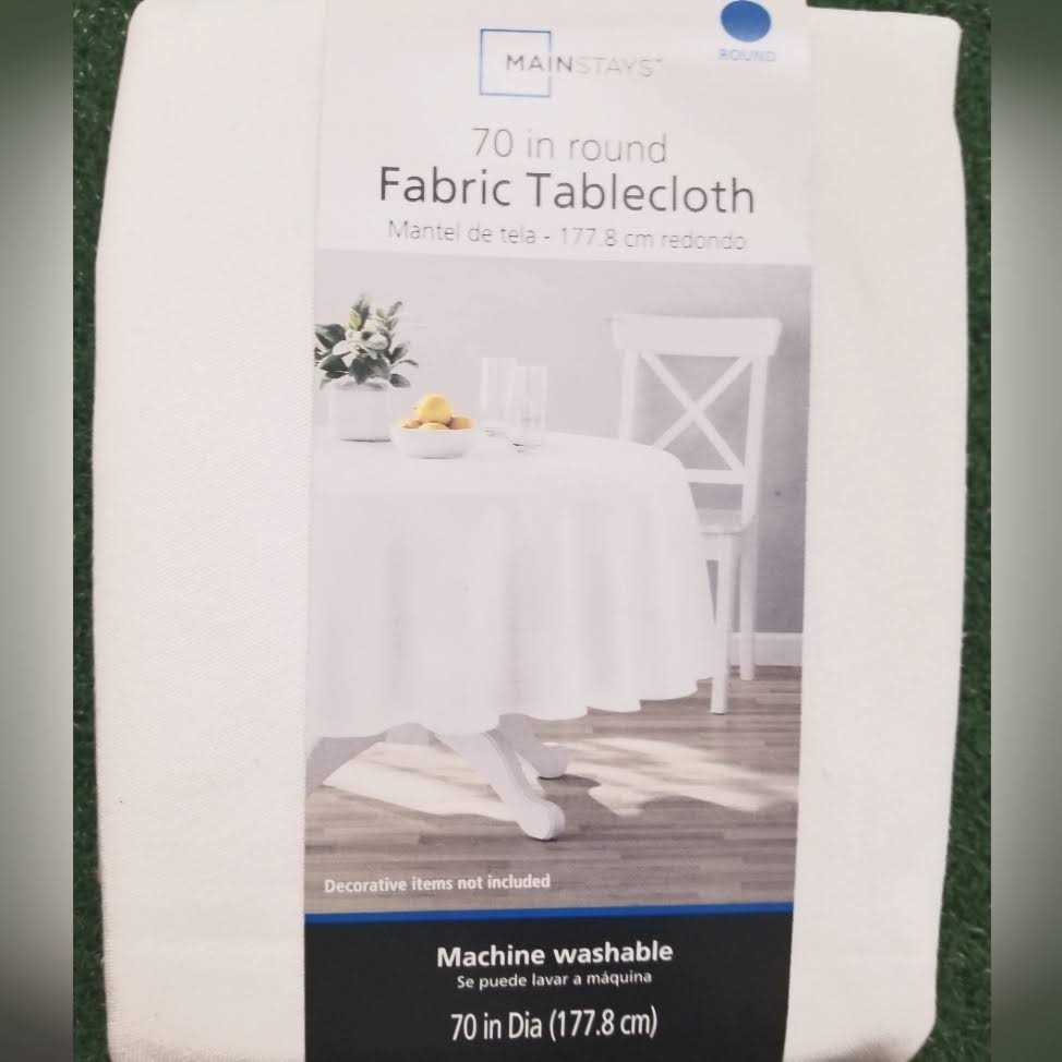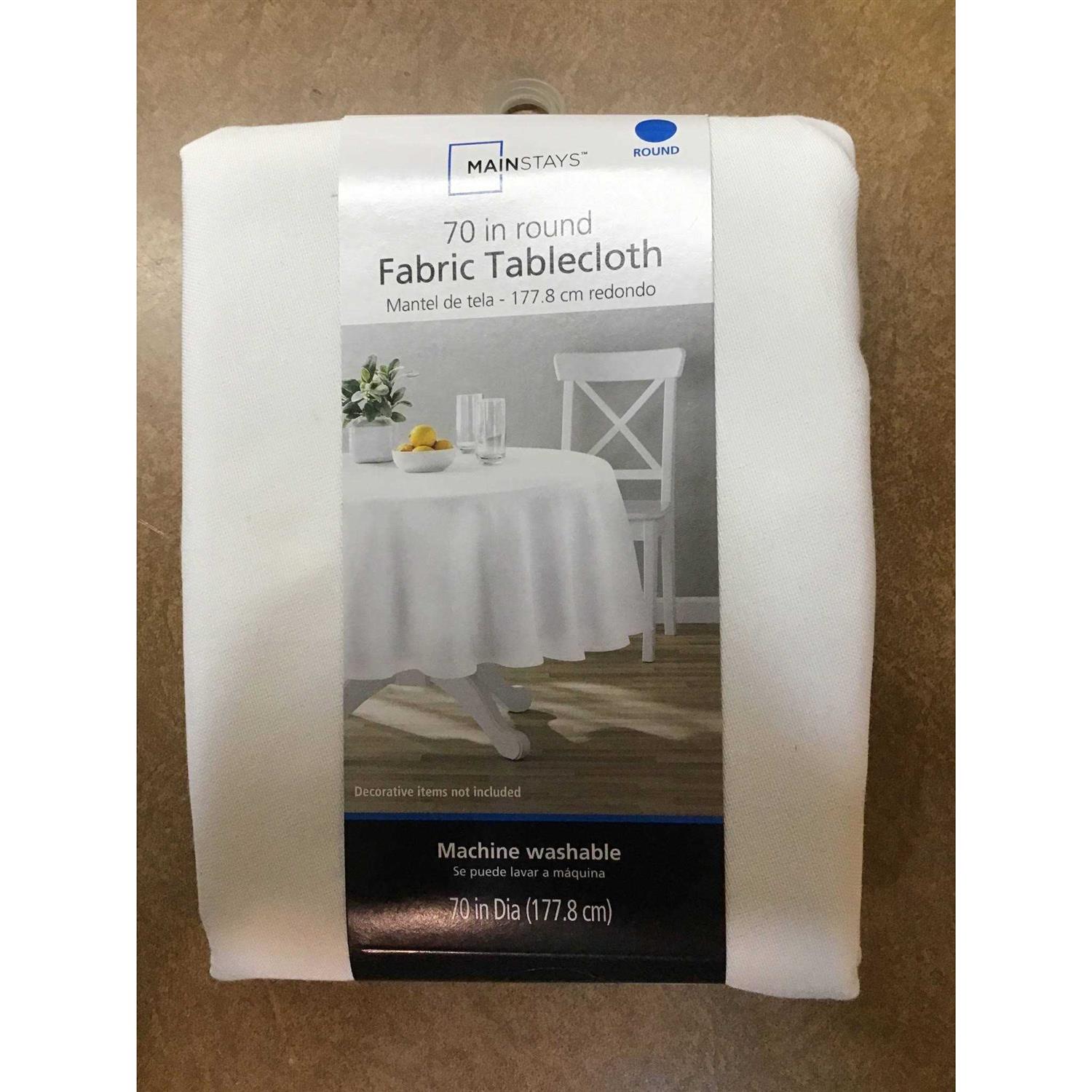No one denies that the kitchen is the heart of the home, and the dining table is the ultimate gathering spot to share a conversation and satisfying meal. Mainstays table textiles will create a warm, inviting living space with colors and prints that you and your family will love. Create a custom and coordinated tablescape and kitchen decor with Mainstays tablecloths, all while incorporating decorative accents with table runners, placemats, and napkins. Serve up a warm welcome to family and guests with this Mainstays Fabric Tablecloth gracing your table. This tablecloth is elegant in its simplicity and makes a gorgeous canvas for your place settings. The design and color of this fabric tablecloth is ideal for blending with various prints, coordinating linens, flatware, and glasses. The Mainstays Fabric Tablecloth will create a strong foundation for the perfect tablescape at your next dinner party yet is practical for everyday use and family meals. The Cotton/Polyester blend material makes this tablecloth versatile in its use and easy to maintain. Simply machine wash and your new tablecloth is ready for your next dining event. Measures 70 in diameter. Imported.
