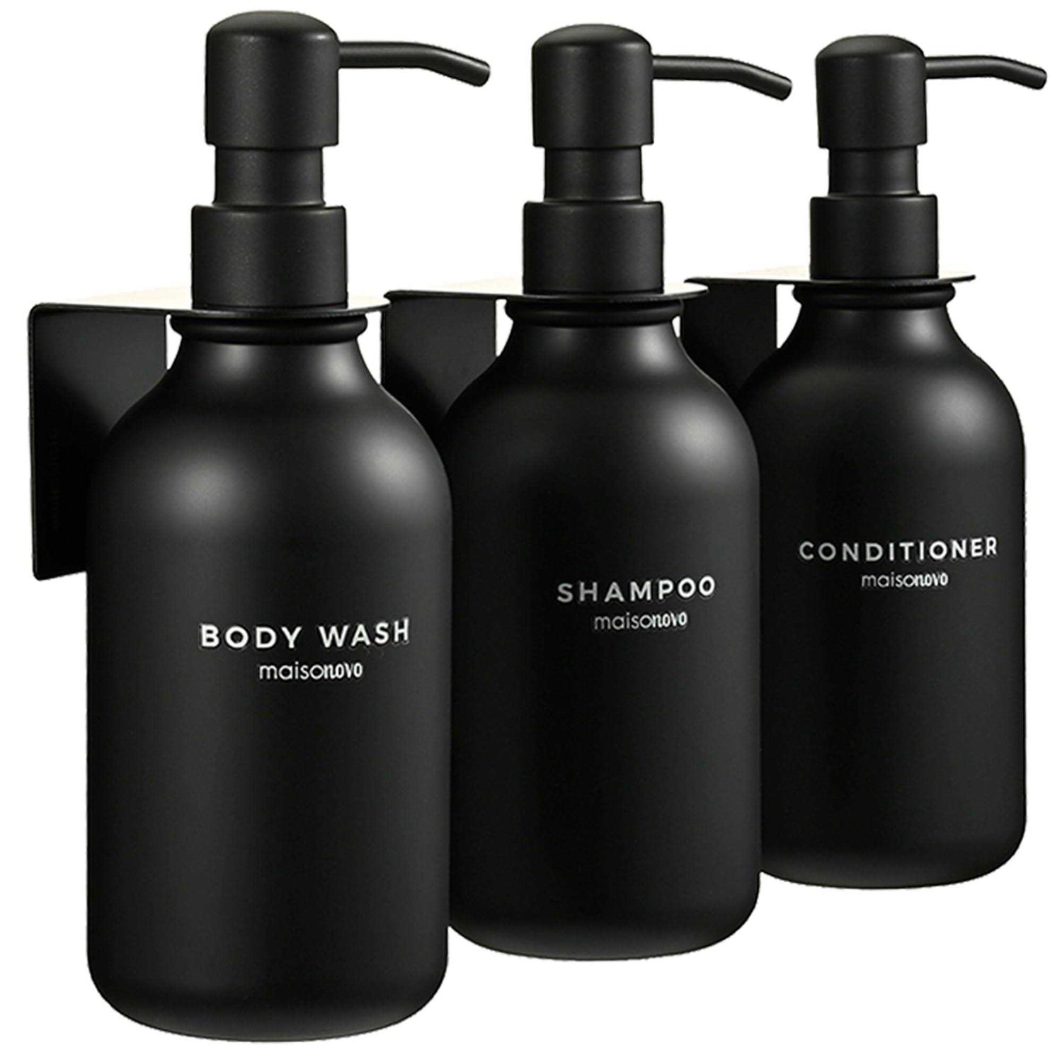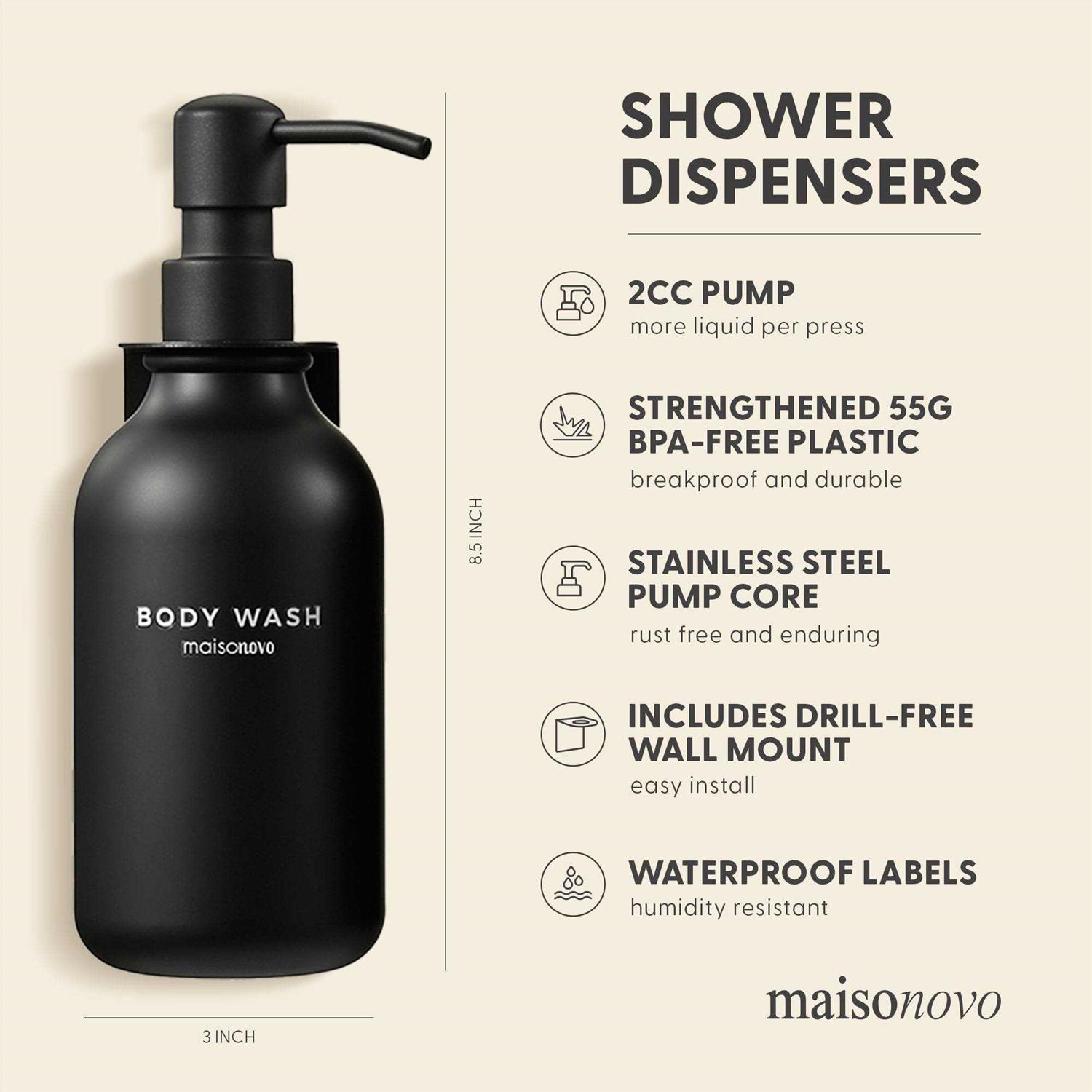 Maisonovo Shampoo Dispenser for Shower Wall Mount Drill Free Shampoo and Conditioner Dispenser Set with Labels