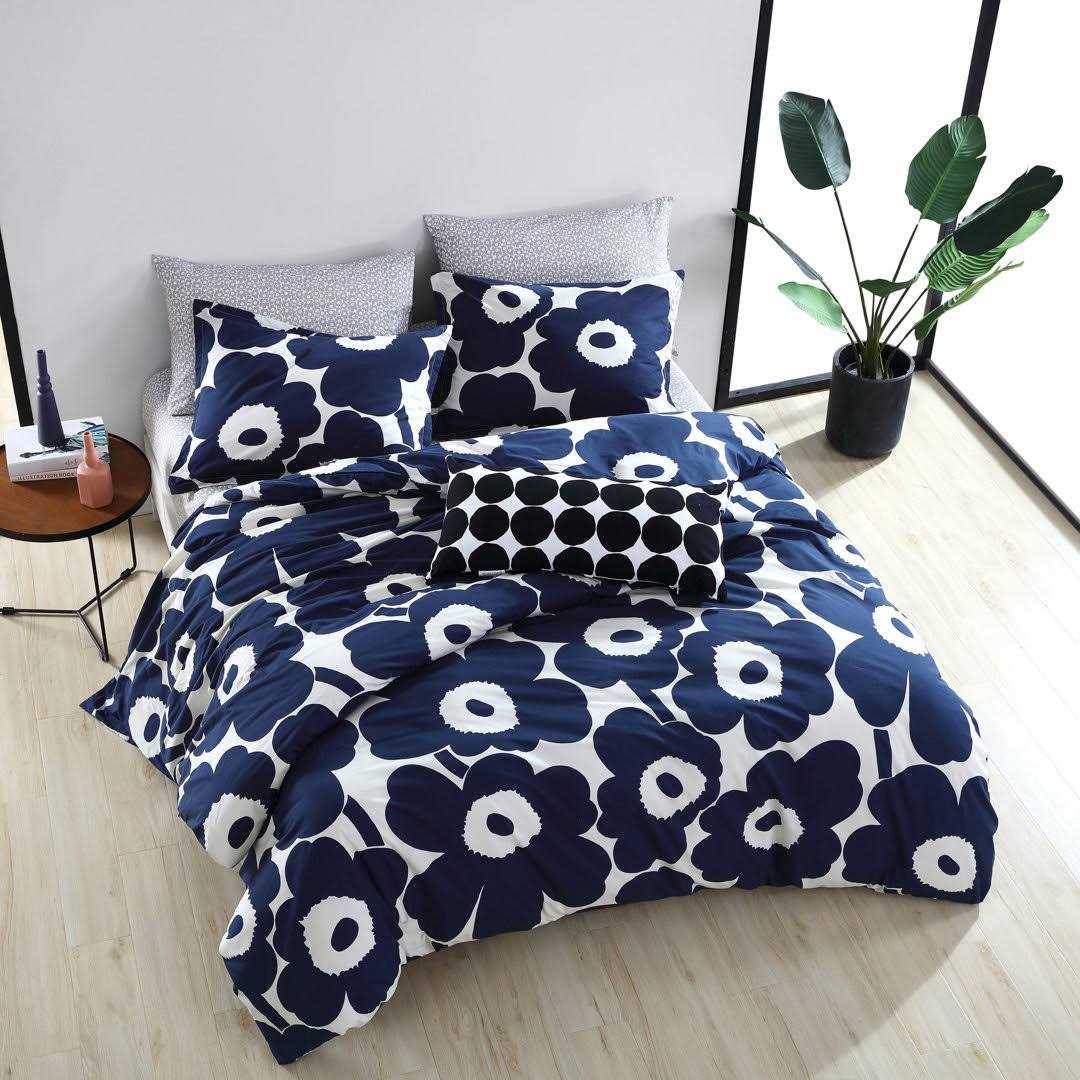 Make a bold and lively statement in your home with the Marimekko Unikko Comforter Set. This iconic Marimekko floral print from the original collection launch in 1964 has been produced in many different colors over the years. The crisp cotton percale construction of this comforter set provides a comfortable sleeping surface to lull you to bed. The percale yarns are woven in a one-over, one-under pattern, which results in a more durable construction that leaves plenty of room for air to pass in and out. Ensembles are machine washable for easy and soften after each wash.