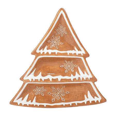 Welcome in the holiday cheer with this Martha Stewart Ceramic Gingerbread Tree 3 Sectioned Tidbit Tray. Shaped like a Christmas tree and decorated to appear like a gingerbread treat, this tray is perfect for parties and family gatherings. The three sections offer endless serving or decoration possibilities and the ceramic construction makes this durable for years of use. Serve chips and dip, a cheese spread, a variety of cookies, and so much more with this adorable holiday tidbit tray from Martha Stewart! Color: One Color.
