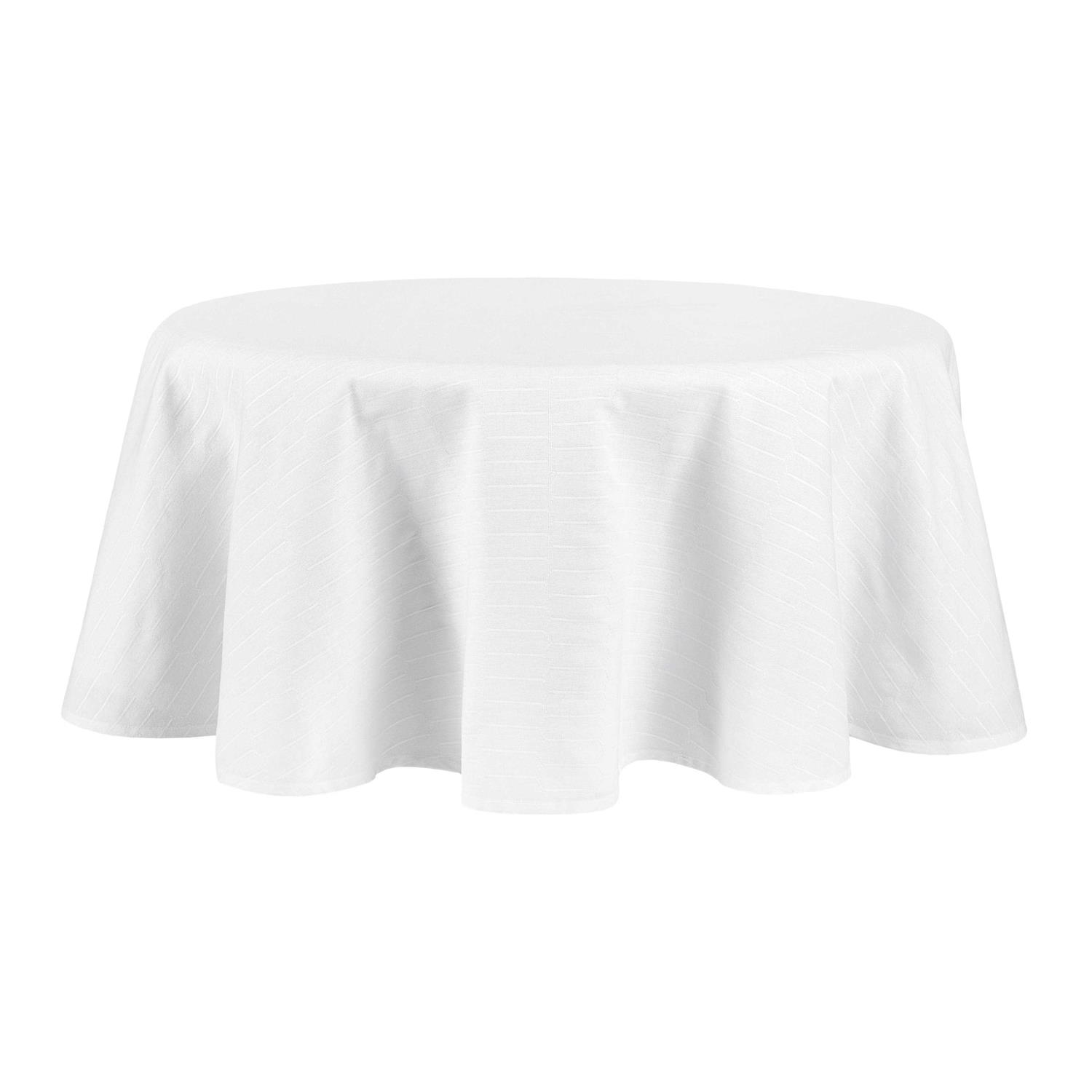 Add a beautiful textured look to your tablescape with the Martha Stewart Honeycomb tablecloth. The sophisticated honeycomb pattern will be the perfect backdrop for your dinnerware and will elevate your table décor. Crafted of a yarn dyed cotton-rich fabric that is durable for long-lasting use and will protect your tabletop. Perfect to use all year round for everyday dining, festive holiday gatherings and formal dinners. For easy cleaning, this tablecloth is machine washable for easy care.
